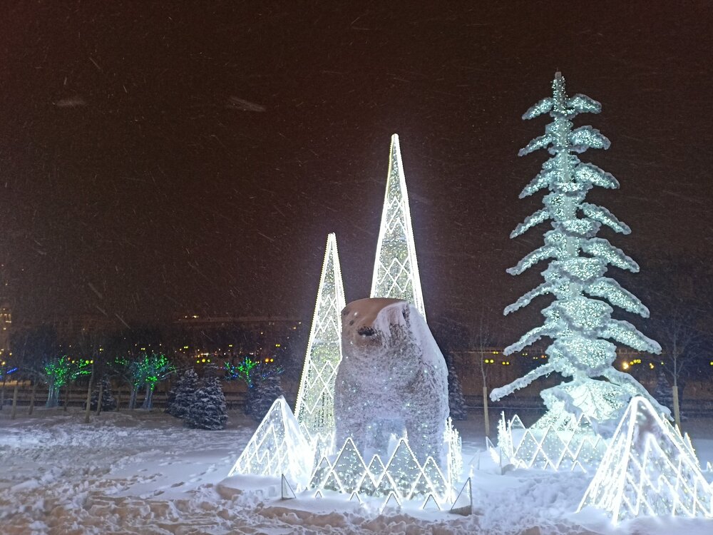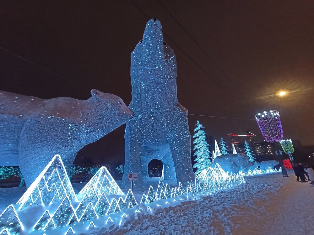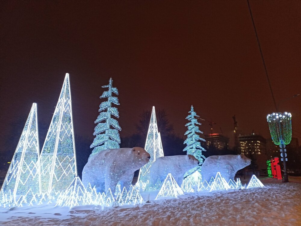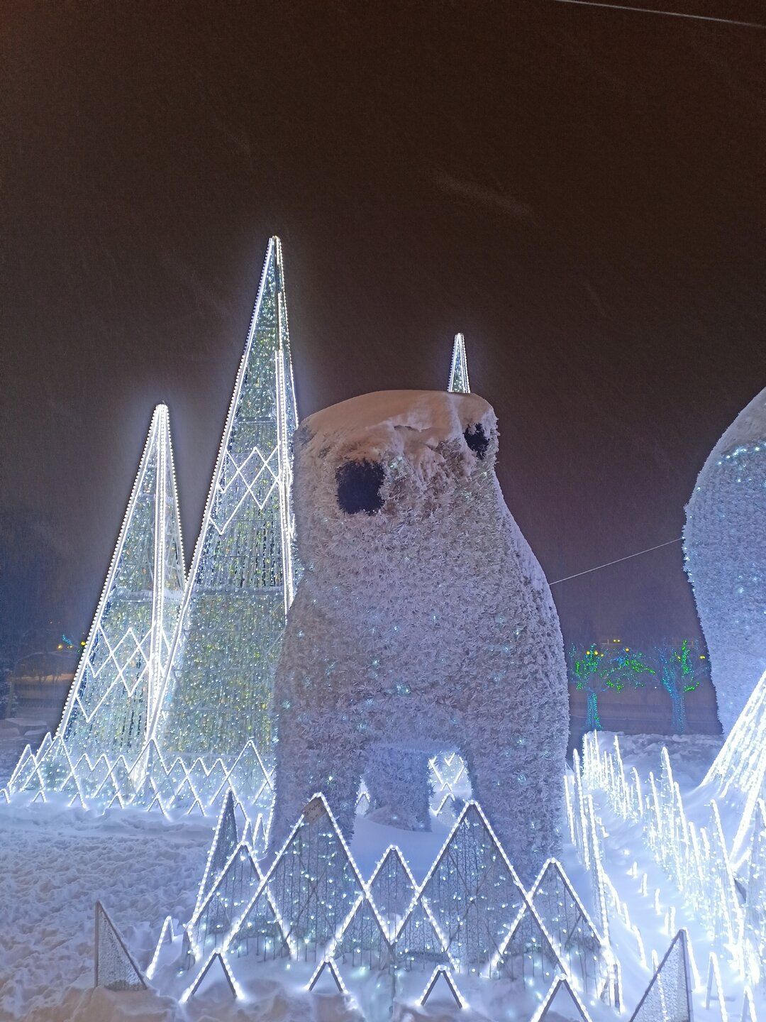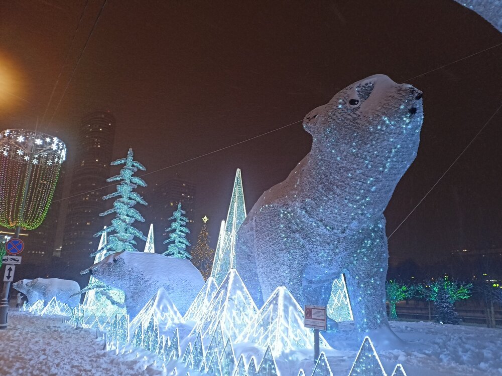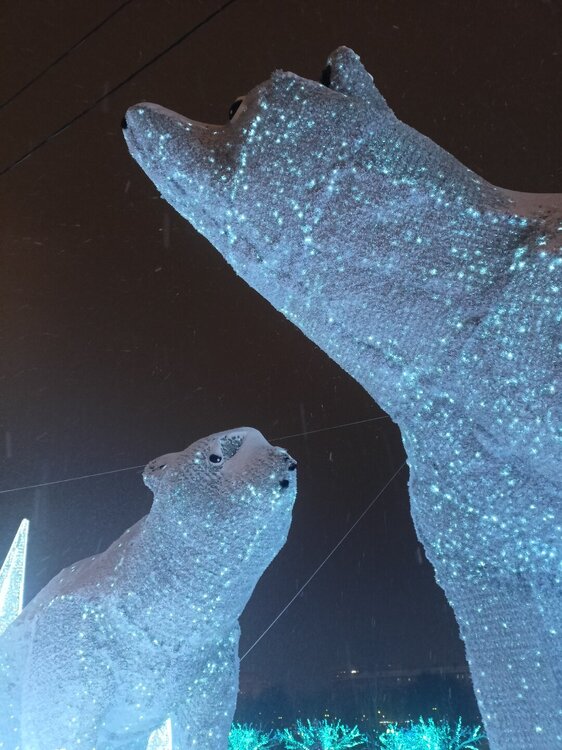 9 января во время снегопада куда меня только не занесло. В какой то момент я уже пожалела,что сдала билет на 16-30 и купила на 22-30))) Около Ростокинского акведука уже не первый год (если не ошибаюсь) располагается группа белых медведей. Всего их 10 (может 9). Но вот крупного только одного увидела. Неужели мама все на себе тянет🤔🥺 у наших тюменских отчётливо мама и папа выделяются) Как я шла от них и до них это отдельная тема. Пожалуй, это было самое отдаленное место от центра города, где я побывала.