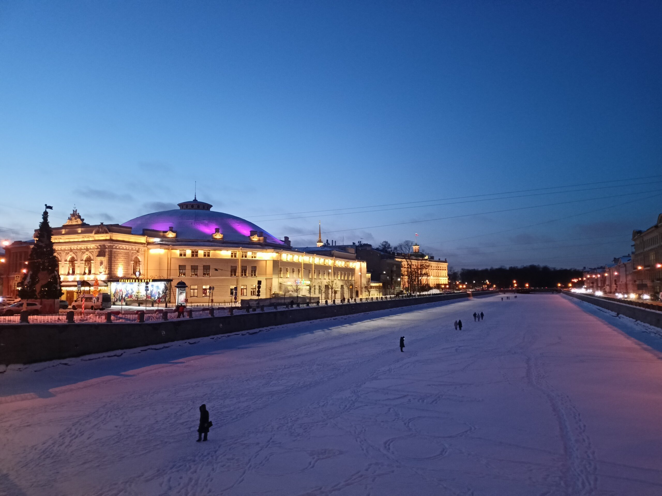 19. Время на отдых и сменить одежду с обувью у меня ровно 20 минут. Если я выйду в 13-20, то без надрыва дойду до точки сбора у здания училища барона Штиглица на пешеходную экскурсию "Закат империи: Литейный округ". Интернет построил оптимальный вариант и по набережной Мойки, мимо Марсово поля и Летнего сада, пересекаю Фонтанку. Да, опять люди гуляют по рекам) Гуляем по разным улица, заходим во дворы под интересные рассказы об обитателях и времени Строгий регламент и в сад Дружбы (китайскими мотивами) мы не заходим, но я специально в темноте ходила к нему не так давно. Обращают наше внимание на дворы- курденёры, о которых я буквально недавно читала в интернете. Ограды на Литейном с элементами от пушек на всем протяжении до Невского. Так петляя доходим до Анненкирхе, которая все также работает, сроки реставрации сдвинулись.