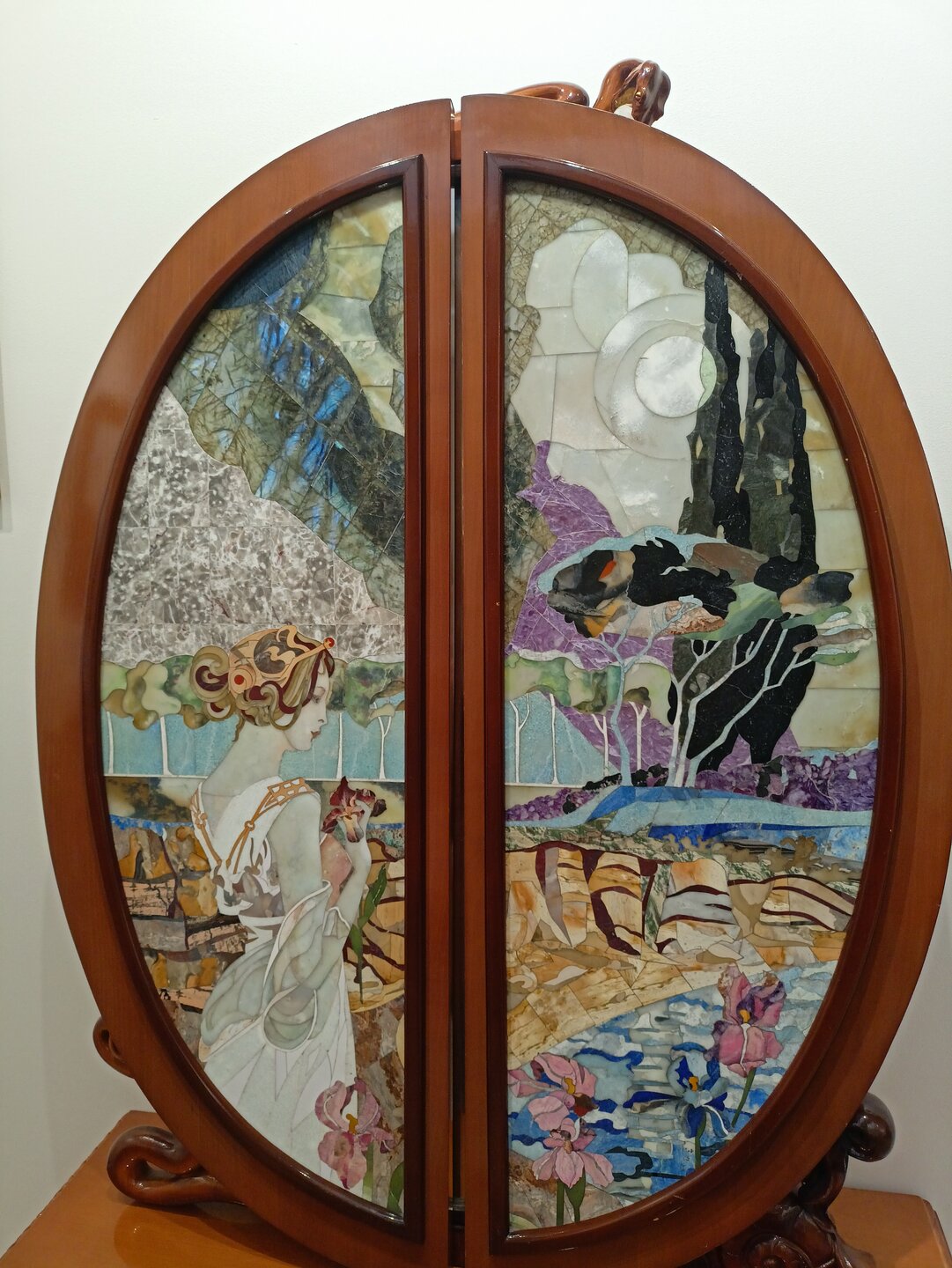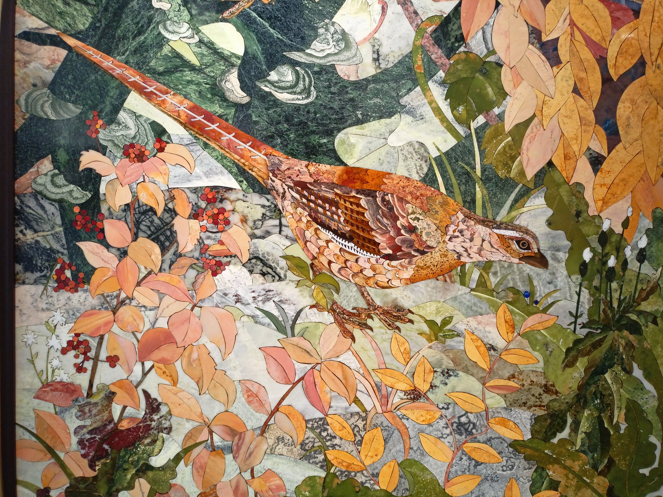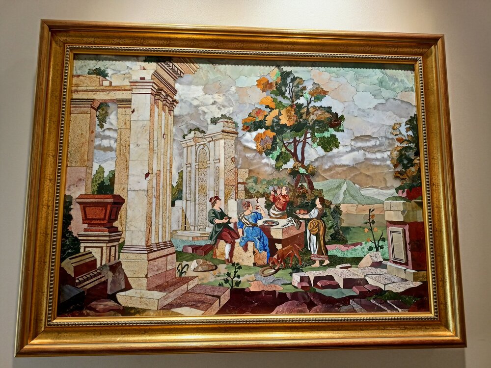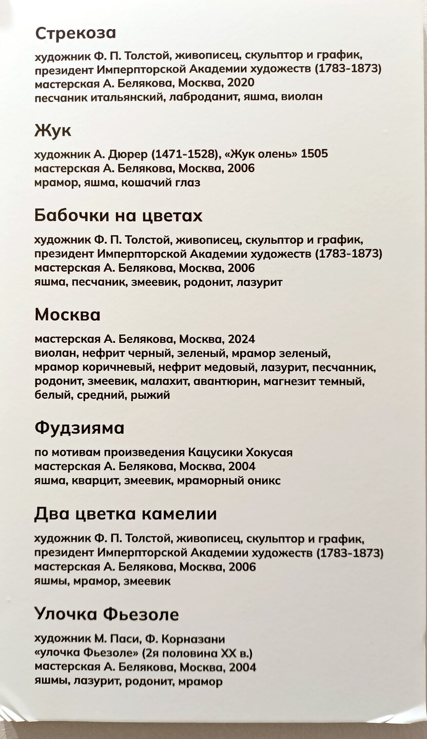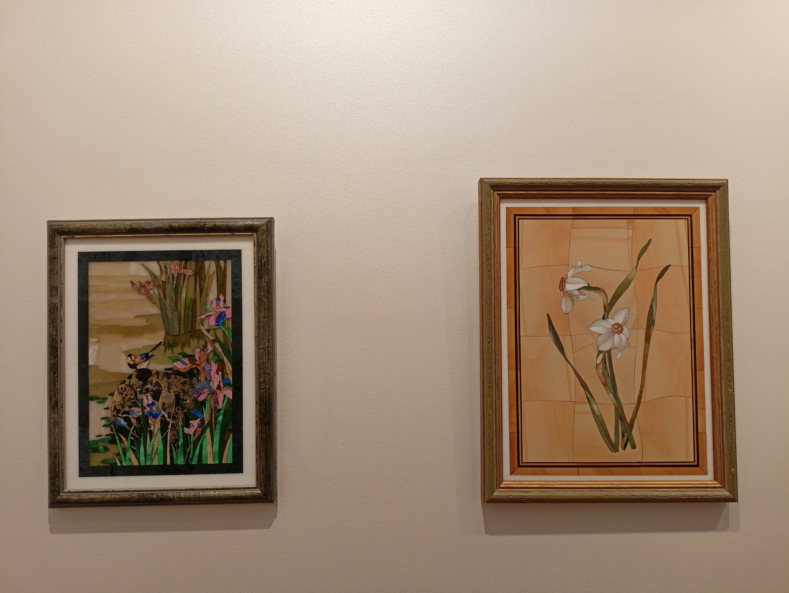 10. Информация на сайте (https://museum.oblfoundation.ru/): "Миссия Деятельность музея направлена на актуализацию мозаичного искусства в контексте современной культуры на стыке традиции и современных интерпретаций. КОЛЛЕКЦИЯ Флорентийская мозаика – вершина камнерезного искусства. Ее истоки восходят к XVI в., когда великий герцог Тосканы, Фердинанд I Медичи, учредил мастерские обработки твердых камней – Opificio delle pietre dure. Заложенные во Флоренции традиции были приумножены в Российской империи и продолжены в наше время. Основатели музея – Борис и Людмила Ошкуковы – собирали коллекцию произведений российских мозаичистов на протяжении десятилетий. Как музейное собрание она впервые была представлена 23 мая 2003 г. Это событие было приурочено к 300-летию основания Санкт-Петербурга. Ныне экспозиция музея включает в себя произведения практически всех мастерских флорентийской мозаики, существующих в современной России. В музее представлено беспрецедентное собрание – более 600 декоративных панно, предметов интерьера, ювелирных украшений." А этот цветок - единственная итальянская работа в музее А по залам мы пройдемся в следующих сообщениях.