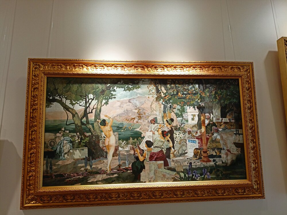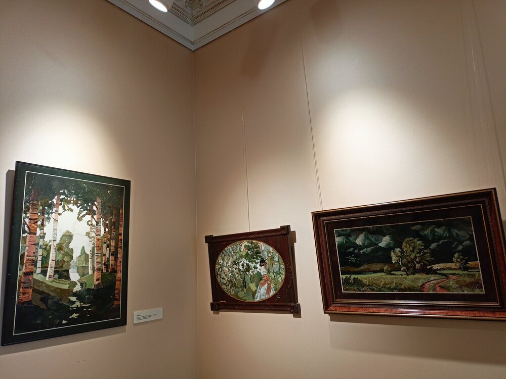 3. После меня пришла ещё пара, а так я была одна. Несколько раз прошлась по залам. Есть работы для продажи. Многие панно я не фотографировала, поэтому коллекция больше, чем я здесь показала. На мягком диванчике в коридоре можно отдохнуть и вперёд на следующий пункт плана. Музей рекомендую. Мне очень понравилось!