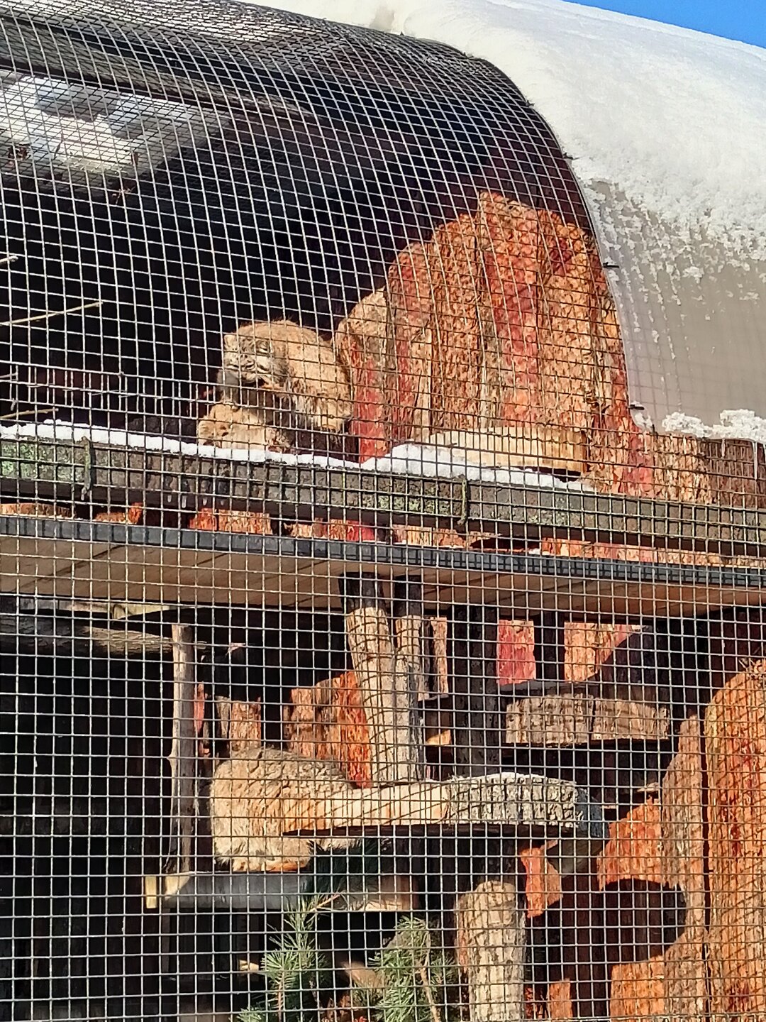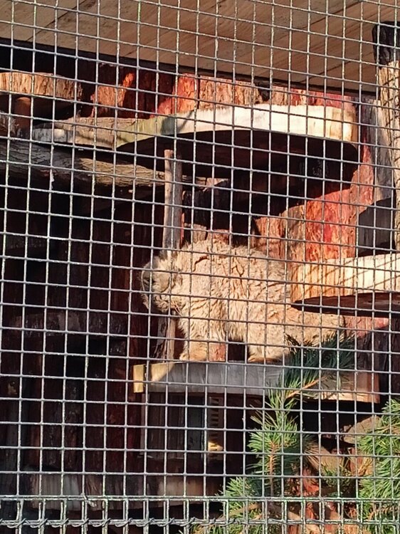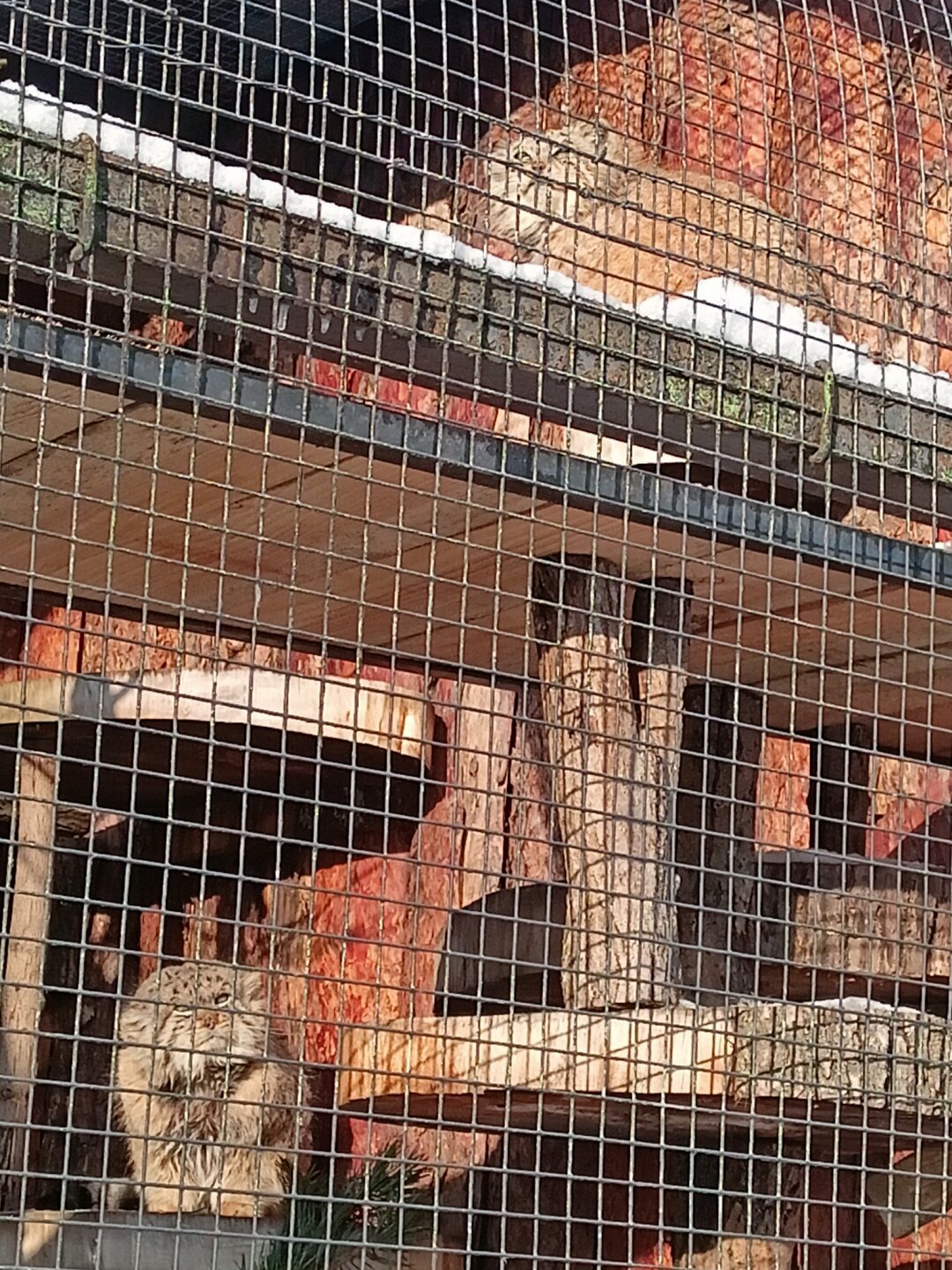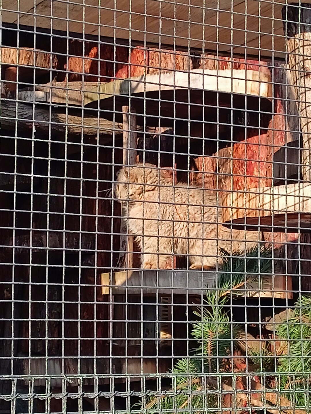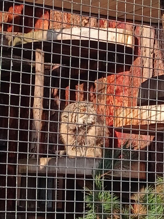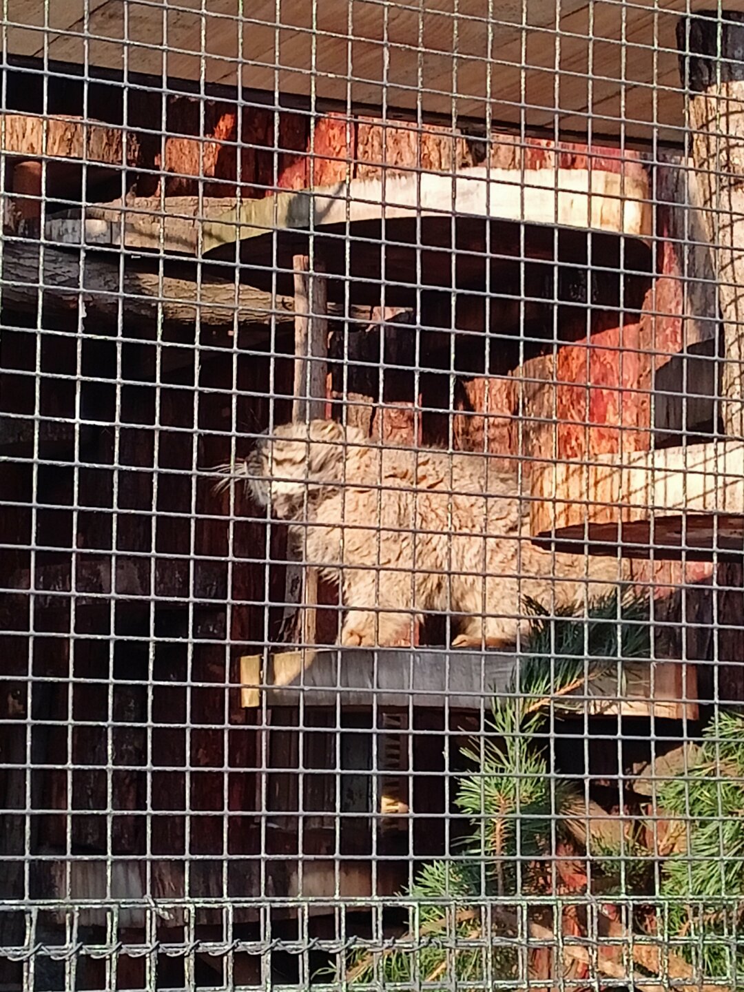 2. В первый день я отлично провела время с манульчиками. И мне непременно захотелось их вновь посетить. С утра была очень плохая видимость. Наверно высокая влажность и мороз давали эффект пелены. Но выйдя из музея и приехав в Лензоо я обнаружила яркое светящееся солнце и облачность развеялась. Намика и Свэн чрезмерно активны. Он постоянно за ней бегал, а она то шипелс на него, то била лапкой , но если он оскорбленный уходил к себе, то она шла его искать. Столько времени мне удалось провести в их компании. Они оба освещены солнцем. Морозно, а они греются в его лучах. Намика специально бегала по самым высоким полочкам, а Свэн и медленнее и ему не под силу высоку взбираться. А какие песни он пел для жены. А она ... 😈 А что же Шуня. А он ни разу не показался. Дремал, мечтал о встрече с Пепе. Ненадолго покидала манулов,чтоб найти красивых лисиц - Персея и Джинджер (она все время спала, свернувшись в клубок), а также поесть в местной столовой (мне понравилось). На сей раз я времени провела с ними побольше, чем в первый день. Но под конец Свэн окончательно удалился в домик, а Намике стало скучно без Свэна, пыталась его вызволить. Но безуспешно. Свэн готовится к вечерним догонялкам))) Время неумолимо, надо идти дальше, а Шуни все нет . И вот иду по направлению в Петропавловкой крепости, а от манулов есть пространство прям на дорогу, и что я вижу - Шунечка соизволил выйти (фото в конце, где ограда зоо и дальняя округлая фигура Шу)