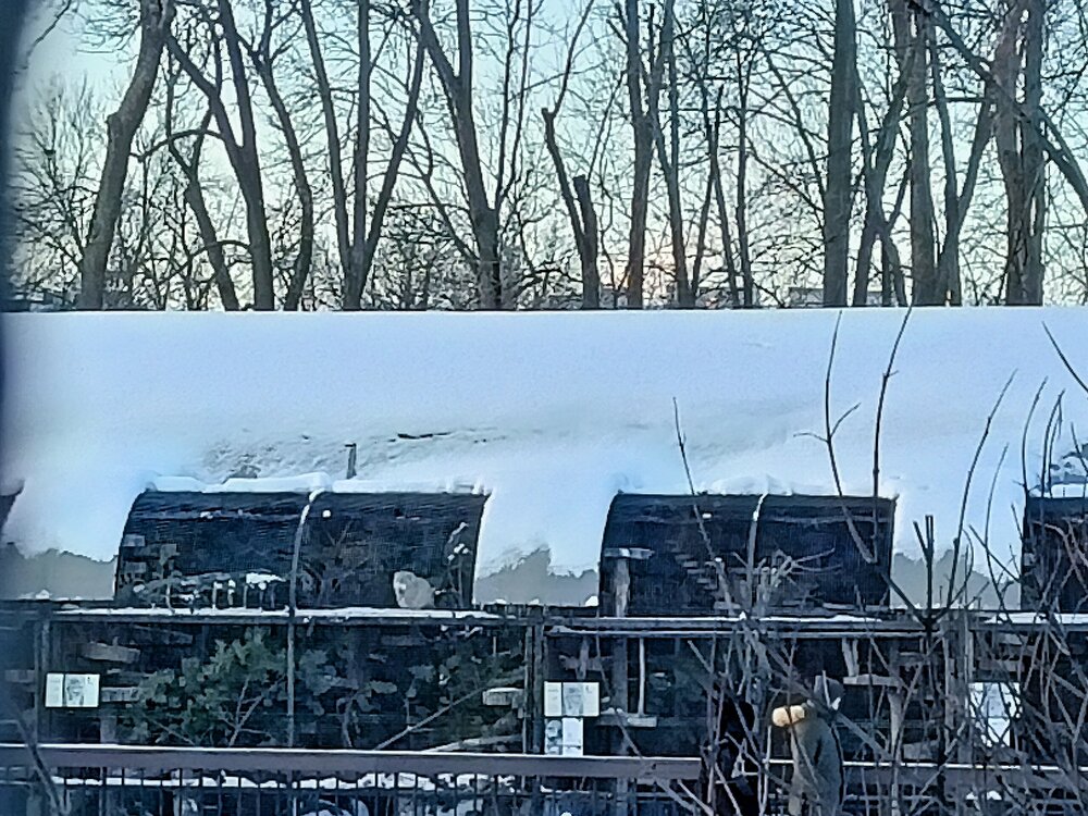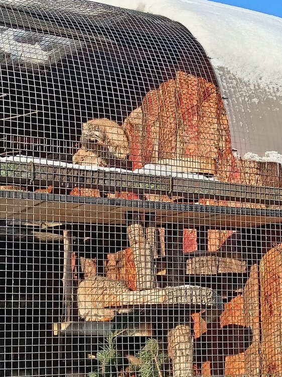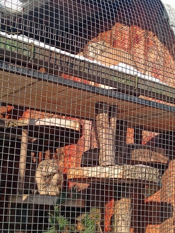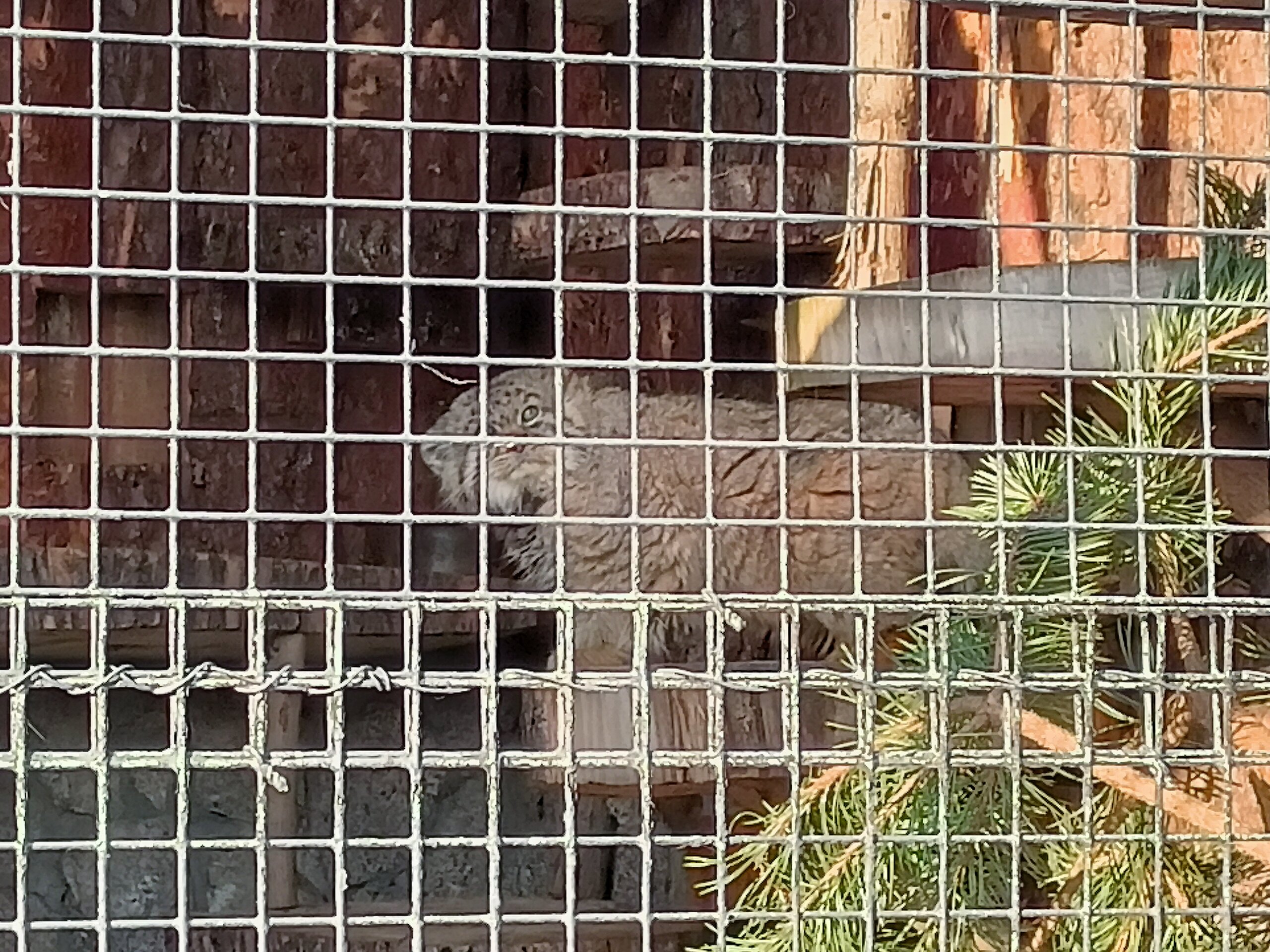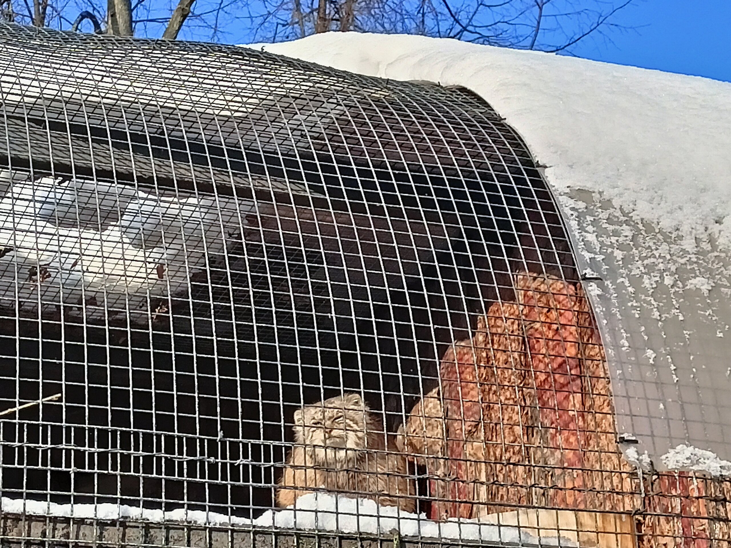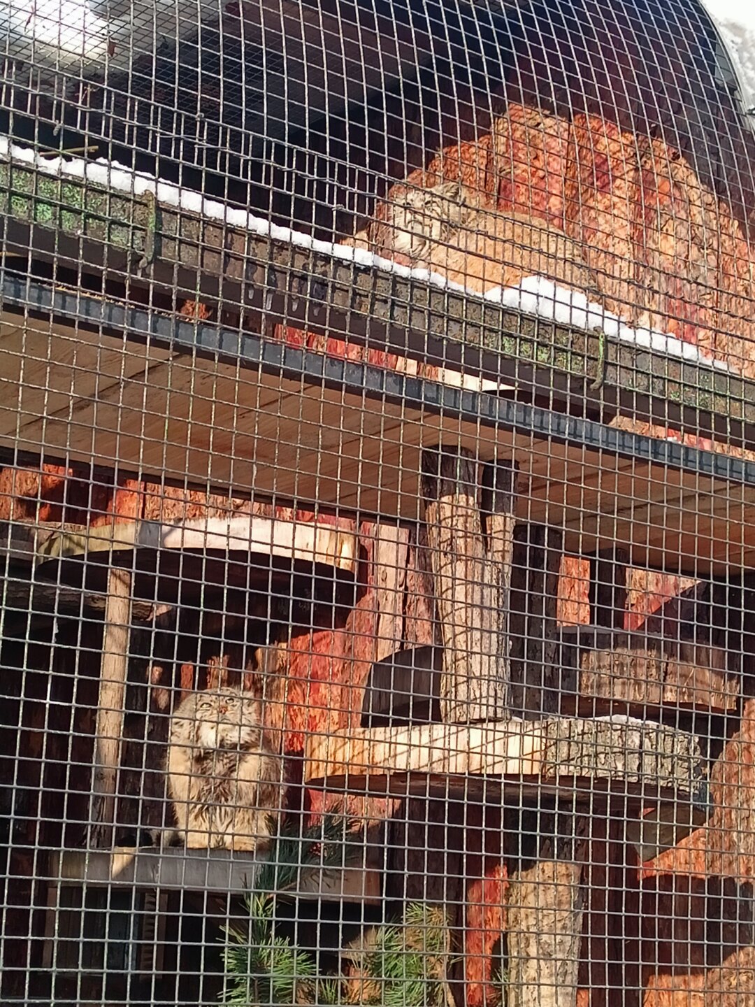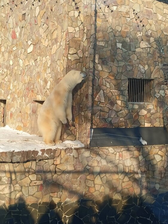 2. В первый день я отлично провела время с манульчиками. И мне непременно захотелось их вновь посетить. С утра была очень плохая видимость. Наверно высокая влажность и мороз давали эффект пелены. Но выйдя из музея и приехав в Лензоо я обнаружила яркое светящееся солнце и облачность развеялась. Намика и Свэн чрезмерно активны. Он постоянно за ней бегал, а она то шипелс на него, то била лапкой , но если он оскорбленный уходил к себе, то она шла его искать. Столько времени мне удалось провести в их компании. Они оба освещены солнцем. Морозно, а они греются в его лучах. Намика специально бегала по самым высоким полочкам, а Свэн и медленнее и ему не под силу высоку взбираться. А какие песни он пел для жены. А она ... 😈 А что же Шуня. А он ни разу не показался. Дремал, мечтал о встрече с Пепе. Ненадолго покидала манулов,чтоб найти красивых лисиц - Персея и Джинджер (она все время спала, свернувшись в клубок), а также поесть в местной столовой (мне понравилось). На сей раз я времени провела с ними побольше, чем в первый день. Но под конец Свэн окончательно удалился в домик, а Намике стало скучно без Свэна, пыталась его вызволить. Но безуспешно. Свэн готовится к вечерним догонялкам))) Время неумолимо, надо идти дальше, а Шуни все нет . И вот иду по направлению в Петропавловкой крепости, а от манулов есть пространство прям на дорогу, и что я вижу - Шунечка соизволил выйти (фото в конце, где ограда зоо и дальняя округлая фигура Шу)