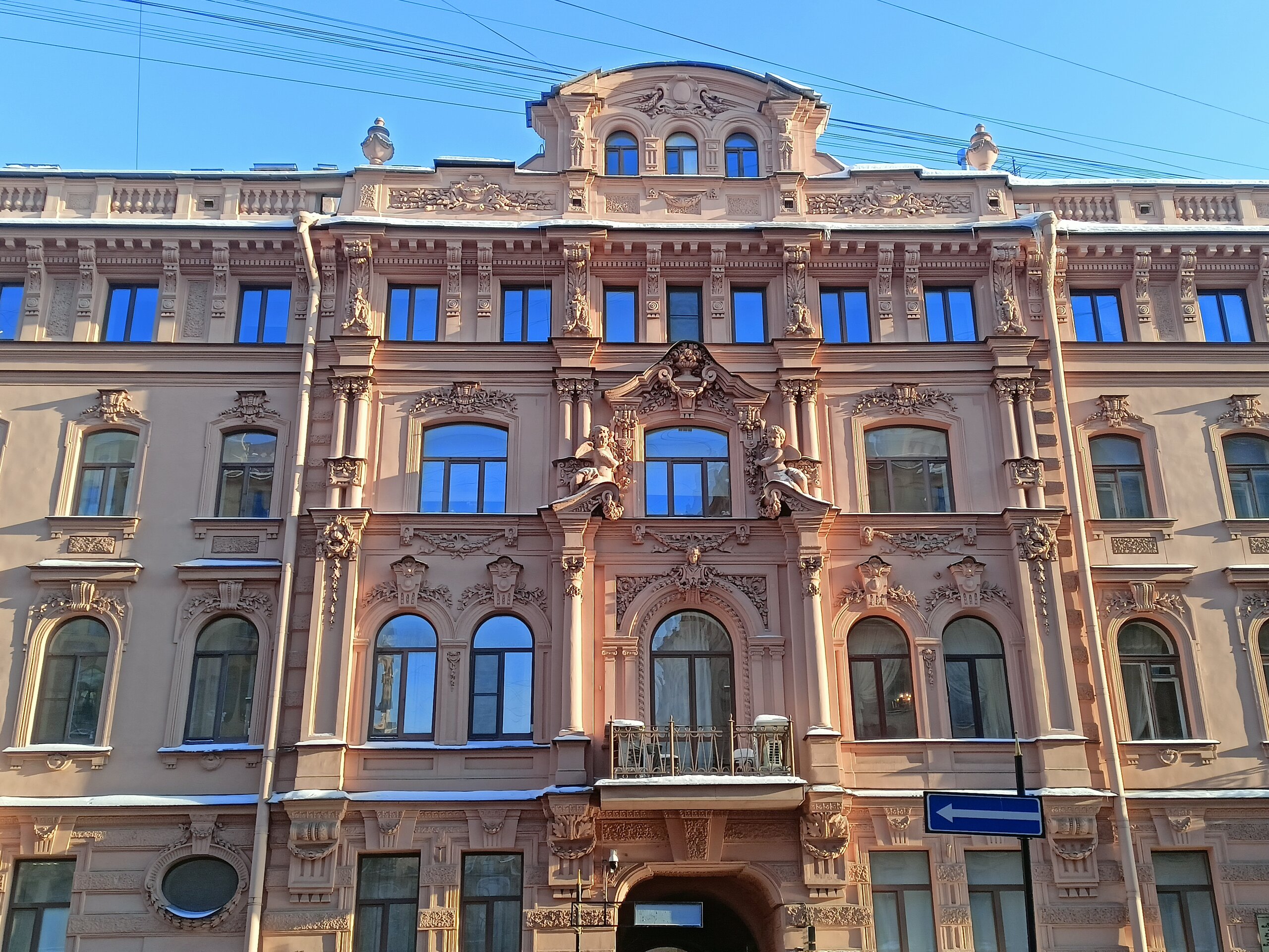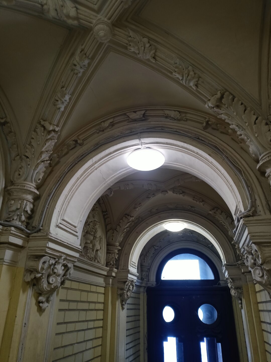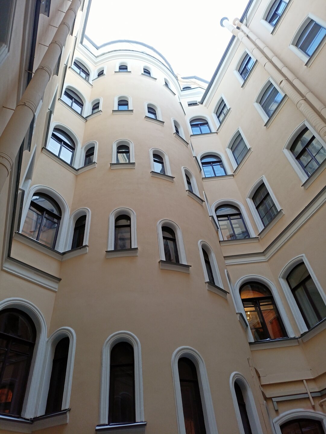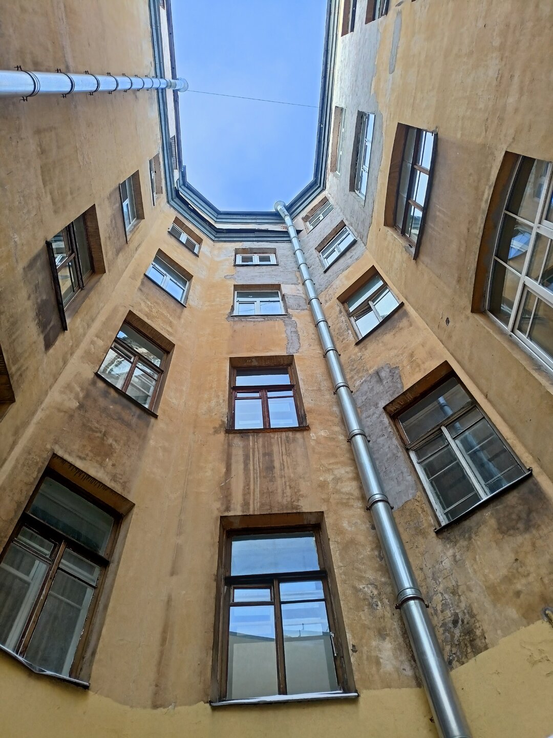 Через дворы пробирается на набережную Фонтанки и заходим в дом Елисеевых В отремонтированных дворах все электросетевые коммуникации стали убирать в пенал. Такое я увидела впервые. Более привычное когда десятки проводом тянутся вдоль домов Вот это со звёздами воздуховод для бомбоубежища А это вход в него Где-то так и остались навесные петли от больших дверей, которые вели в конюшни. Мне этот факт показался странным, ну значит так и было Входим в парадную дома Елисеевых Внутренний двор и поилка для лошадей в виде львиной головы Переходим в следующие дворы и на этом 1.5 часовая пробежка закончилась А вот эта напомнило, а как иначе , Венецию. Общая схожесть с той знаменитой лестницей есть). Здесь располагается знаменитая парадная ромашка.