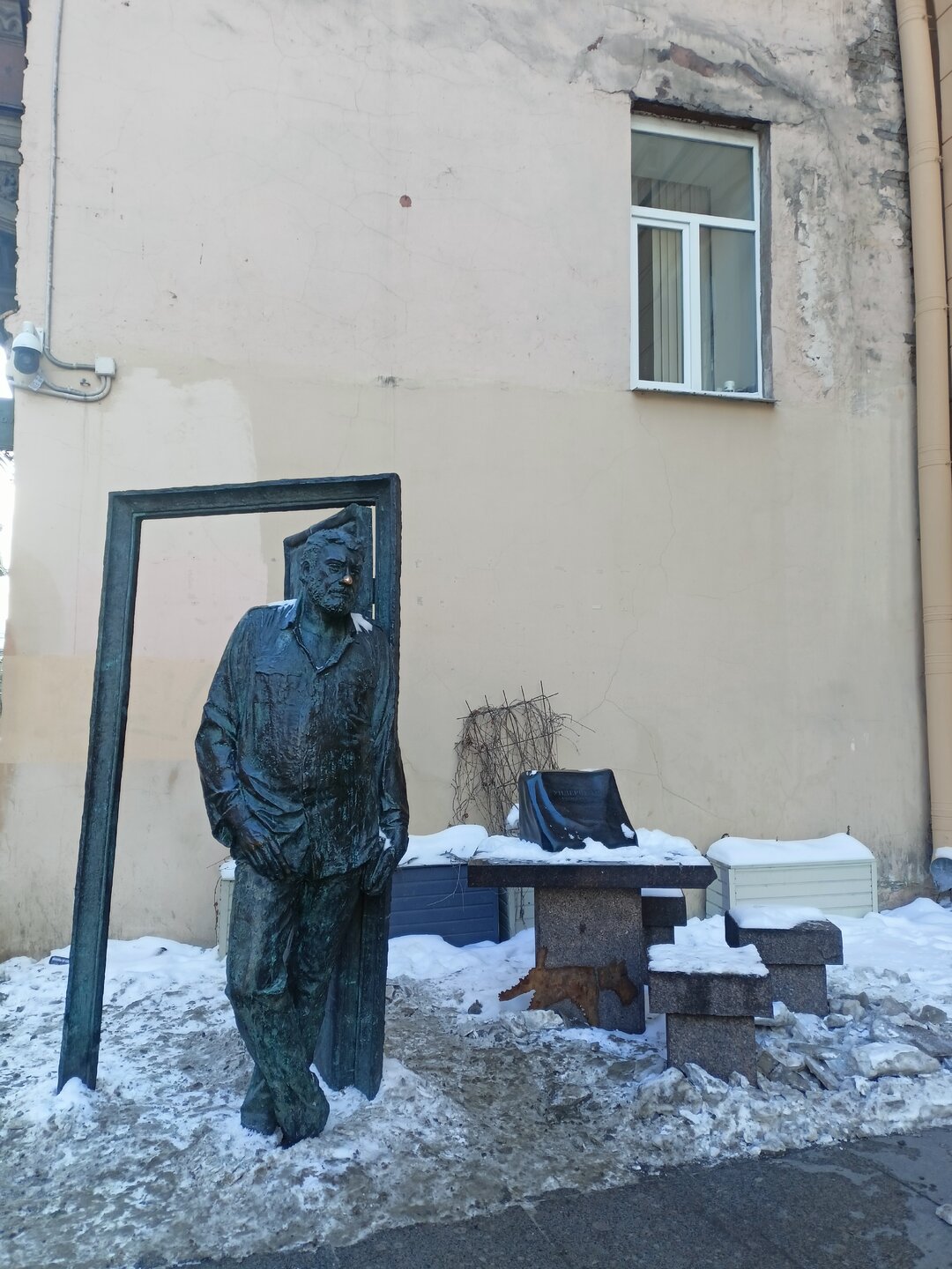 Посмотрев на дом-коммуну, мы идём на Рубинштейна. Мне кажется по своей воли я никогда не была на ней, также как и на 5 углов. Ну не мой район, хотя он один из самых известных. Ой, а что в Петербурге не известное?) До этого тоже ходила здесь с экскурсией. Как сказал экскурсовод - в этом доме и жила в блокаду О. Берггольц Я даже не знаю как нас с мамой занесло во Владимирский собор в 2011 году. Видимо следовали заветам путеводителя) Но где были до него и куда ушли после - не помню совершенно))) Наверно, приехали и уехали) Ворота Толстовского дома. Помню я там в метель оказалась и у меня мгновенно разрядился телефон. Как там завывал ветер и с крыш сносило снег. Февраль тоже был. Потом еле до автобуса дошла , а в нем телефон уже и ожил) Вышла 10-минутная пауза и я просидела вот тут за столом рядом с памятником С. Довлатову