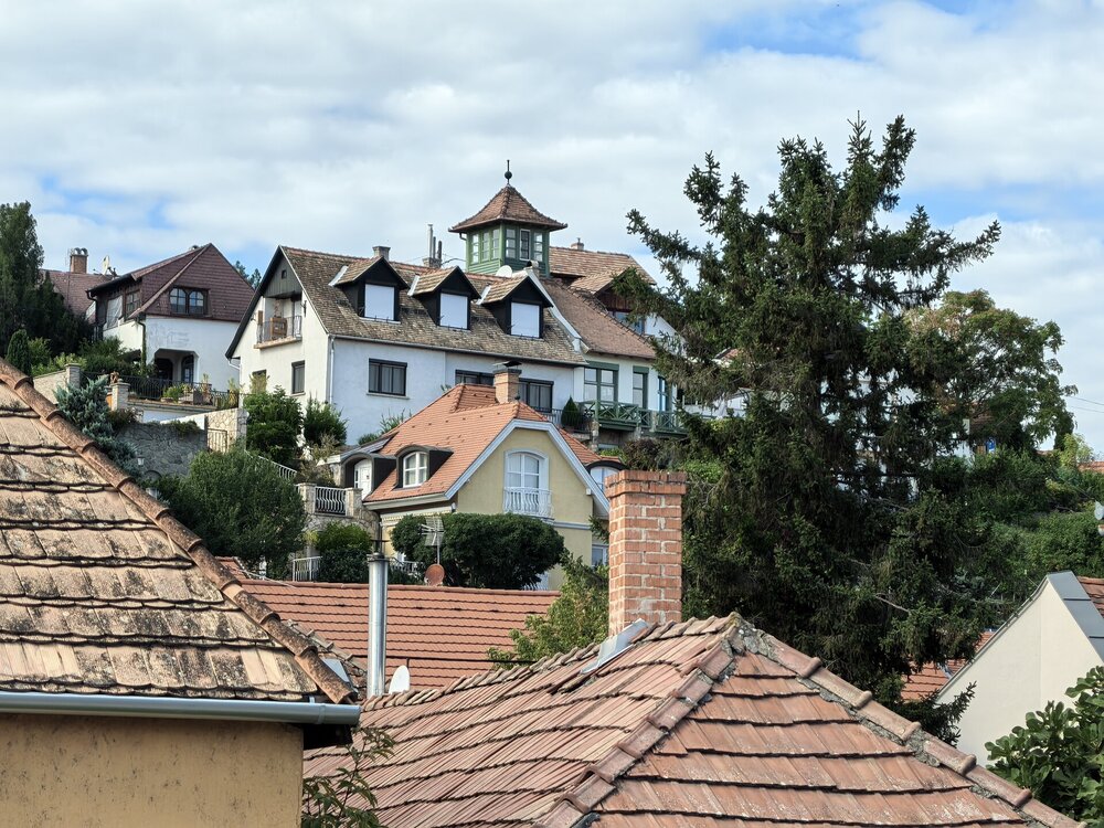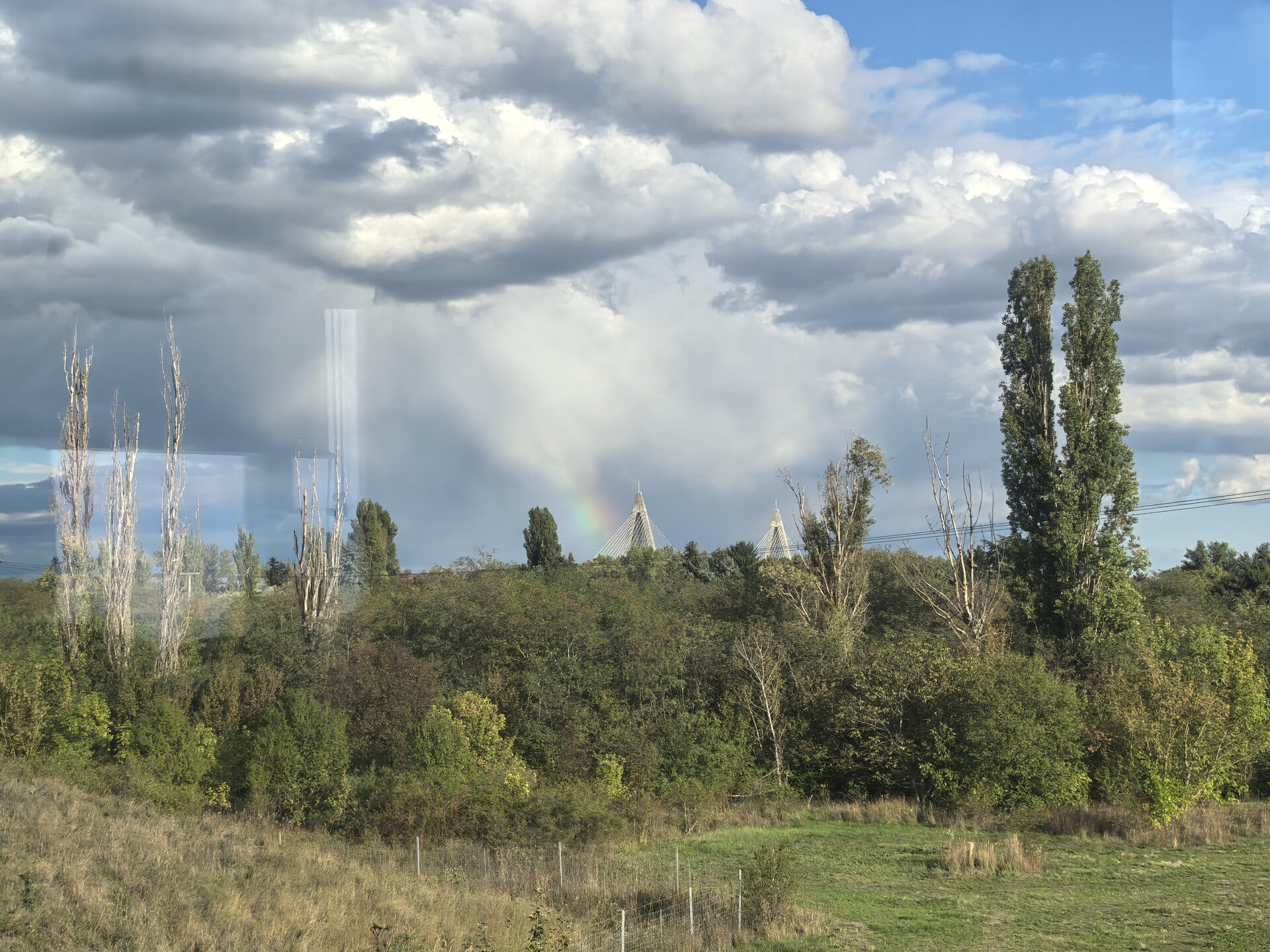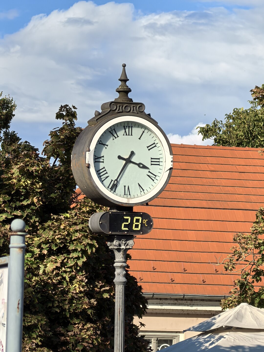 Конечно, мы не могли не заглянуть в новогодний круглогодичный магазинчик. Там было немноголюдно, и это хорошо. И какой красоты там только нет, и достаточно недорого, а где-то даже и дешево. Кстати, в Сентендре самые дешевые магнитики. Потом видели в центре Будапешта всё тоже самое, но в 2 раза дороже :) Вот такого маленького ангелочка мне привозили когда-то из Италии. Интересно, они везде стандартные или так совпало) А этот серый друг теперь живёт в Воронеже. Я коллекционирую фигурки котиков. Есть здесь и небольшой ретро-музей Традиционное фото всех туристов в Сентендре И гуляем дальше, погода разыгралась, тучки разошлись. Понедельник, туристов почти никого, весь город наш. Время близилось к вечеру, и мы засобирались ехать назад. Пришли на вокзал, подошли к автомату, чтобы купить билет... а он неличные-то и не принимает... сломался! ни у кого не принял! а карты у нас нет, и в Будапеште мы не стали брать обратный билет, понадеявшись на то что везде есть автоматы. Хорошо, что в Сентендре жд и автобусный вокзалы рядом. Мы перешли на автобусный вокзал, немного потыкались в автомат с билетами и всё же купили то что нам надо :) Вот так выглядят междугородние автобусы, вполне себе комфортные. Так как платформ достаточно много, и сразу несколько из них (одна за другой) показывали конечную остановку Будапешт с небольшой разницей во времени, а автобусы, оказывается, задерживаются и время отправления меняется, и на билете оно уже неактуально, то пришлось снова попрактиковать английский, спросив у водителя "а тот ли это вообще автобус". И хорошо, что спросили! Потому что наш автобус приехал позже времени билета, с опозданием минут на 15, а в наше время отправлялся другой опоздун. Доехали мы очень быстро, даже видели радугу по пути. Если пройти на сайт перевозчика, то можно отследить движение вашего автобуса в онлайне. В Будапеште сияло закатное солнце, вечер обещал быть красивым. Снова автобус-амфибия И вот посреди золотого закатного неба со стороны острова Маргит огромная туча затянула небо и включила дождь, разогнав нас и наши мысли о прогулки. Ну и ладно, всё равно завтра рано вставать 😉