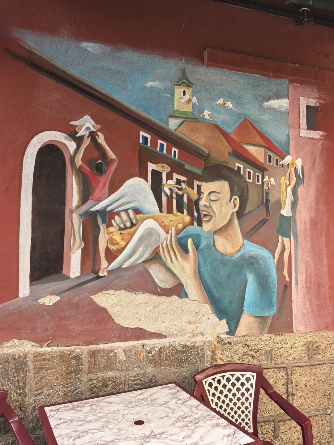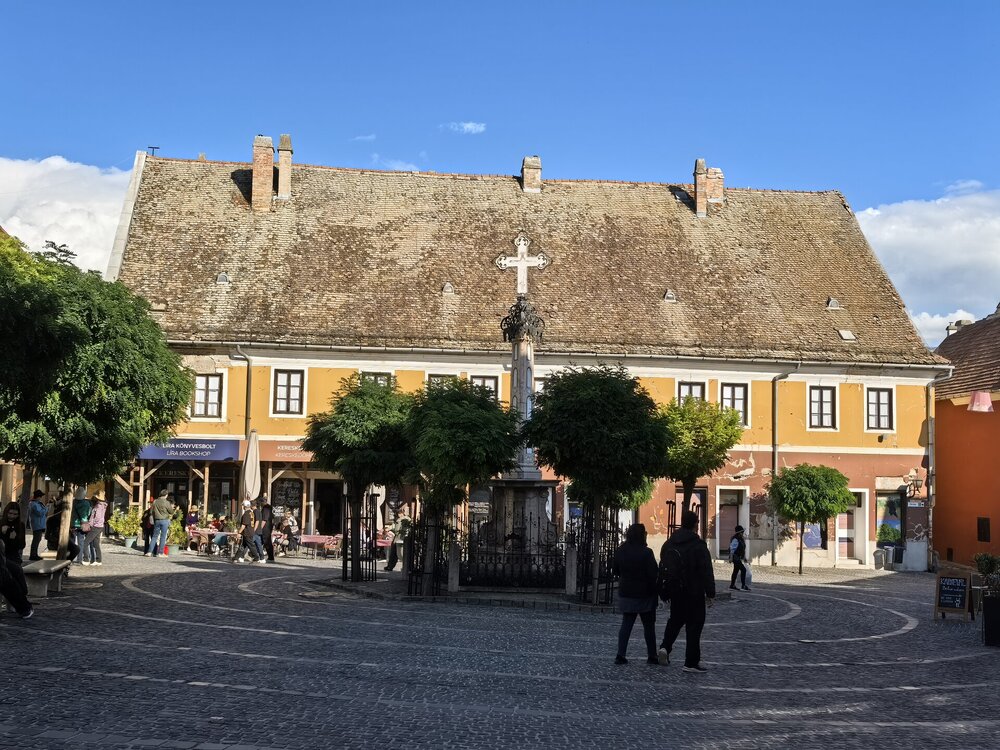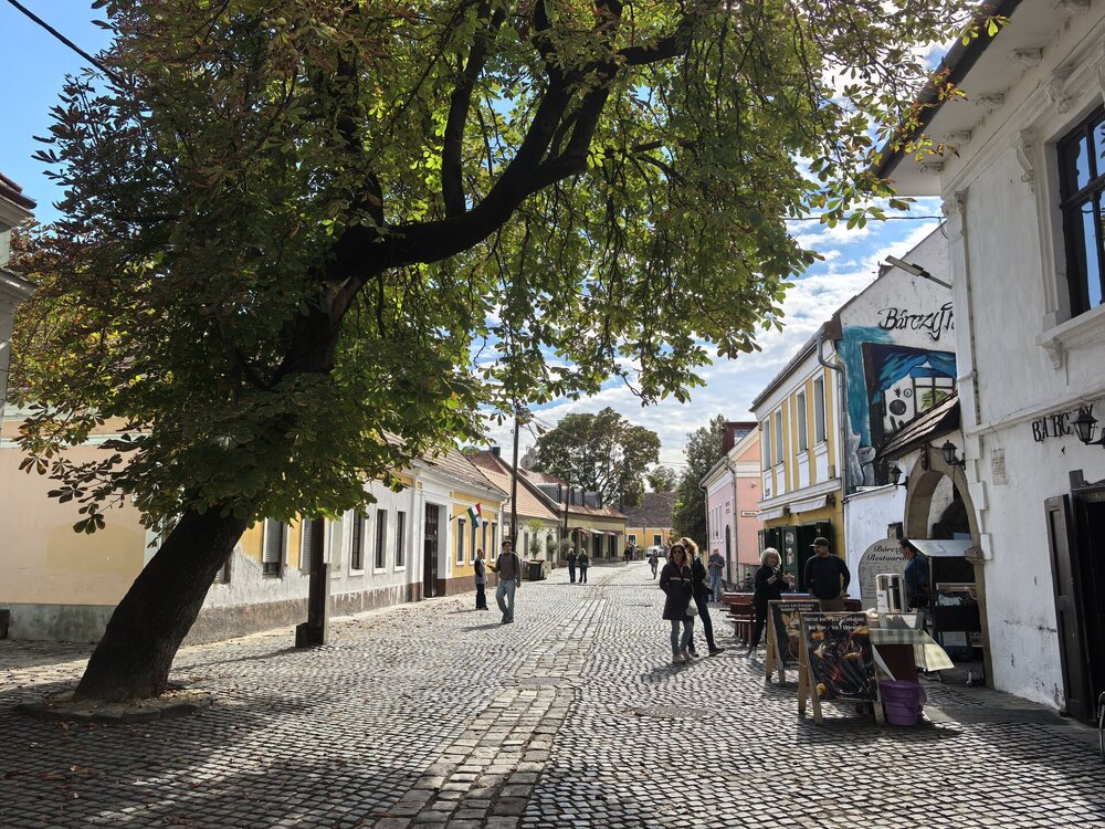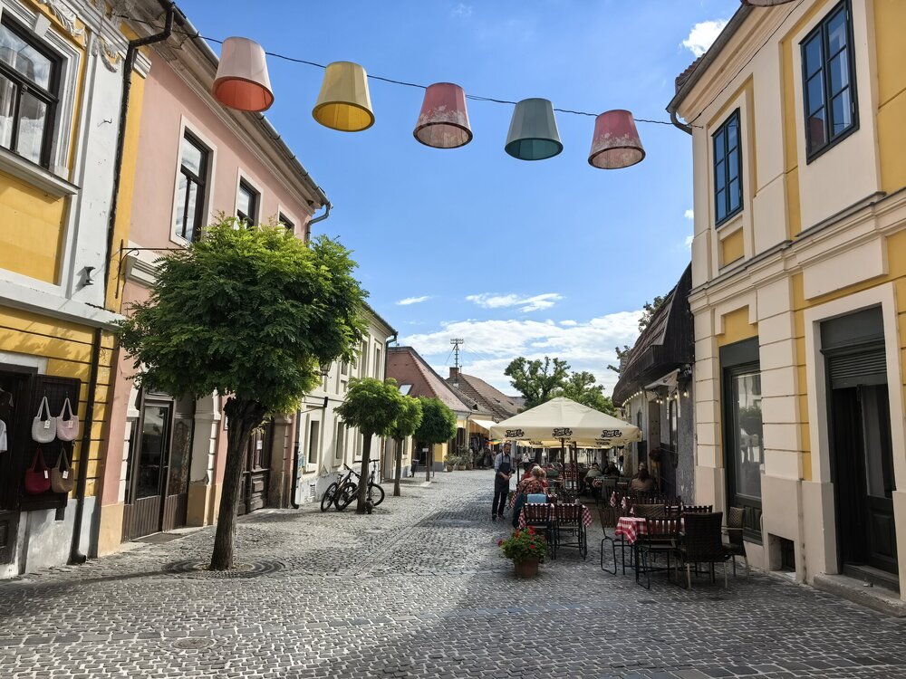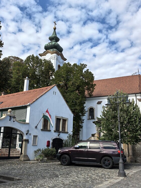 Сегодня утром у нас важное дело - нужно купить билеты до Братиславы. Едем на Западный вокзал или Ньюгати. Тыкаемся в терминал... Хм, нет Братиславы. Нет, инфо процесса покупки не читали. Мы практики, а не теоретики :) Смекнули, что через автомат продаются только билеты на внутренние рейсы. Ну хорошо. Нашли международные кассы. Здание а-ля привет автовокзал в каком-нибудь в воронежском райцентре в 90е годы, да ещё и с огромными решетками на окнах и моё любимое - маленькое окошечко как в кассах банков. И ещё моё любимое - очередь на полчаса и куча бумажек с билетами :) Ну что ж! А вообще сам вокзал с фасада очень красивый, полюбуйтесь. Архитектор тот самый Гюстав Эйфель, даты постройки 1874–1877гг. С чистым сердцем перемещаемся на метро на сторону Буды, не выходя с подземки покупаем билетик до Сентендре (около 2 350 форинтов) и мчимся в ещё один очень красивый и атмосферный городок. Был понедельник, и туристов было немного. Время в пути около 40 минут. Городок устроен так, что от жд вокзала сразу по прямой вы попадаете к его центр. Я была здесь с ттв, и этот путь от жд вокзала мне был в новинку. Этот город очень часто встречался в турах ттв, поэтому не буду здесь дублироваться, я и сама писала ранее о нём. Расскажу о том, что было интересного кроме истории. Почти на главной площади города находится кафешка с очень привлекательной пиццей. Мы шли гуляли, но этот вид счастливых туристов да ещё и с такой пиццей привлек нас как мотыльков на свет. Вообще ни разу не пожалели, что зашли перекусить именно сюда. Очень вкусно. А хозяин заведения, мужчина за 50, каждый раз принося блюдо говорил так Enjooooooooooooy!!! Я не знаю по каким это стандартам венгерского гостеприимства, но звучало это из его уст весьма забавно))) Местные тоже заходили сюда за пиццей на вынос, а школьники пришли поесть после уроков. У католической церкви Святого Иоанна на холме дети пытались разобрать кладку ограждения, строя что-то на свой вкус. И вообще вся площадь перед храмом утонула в детских криках - рядом расположилась школа, и детвора высыпала на перемену. Отсюда самые лучшие виды Прогуляемся понедельничными тихими улочками живописного городка, не зря его выбрали художники как своё пристанище, очень не зря.