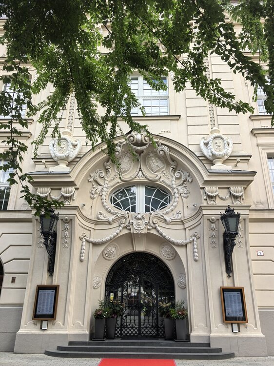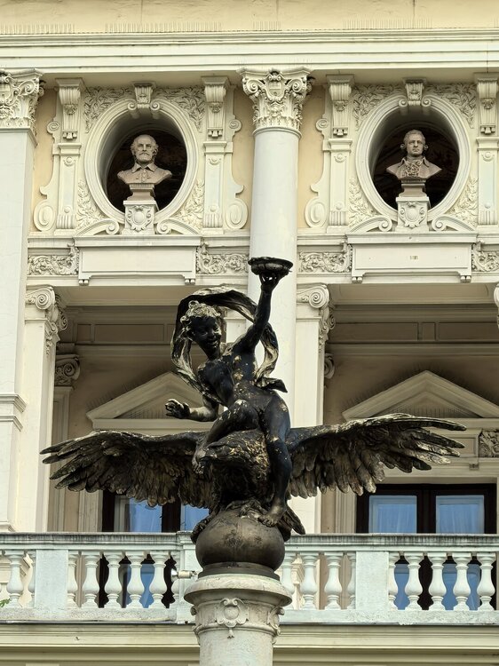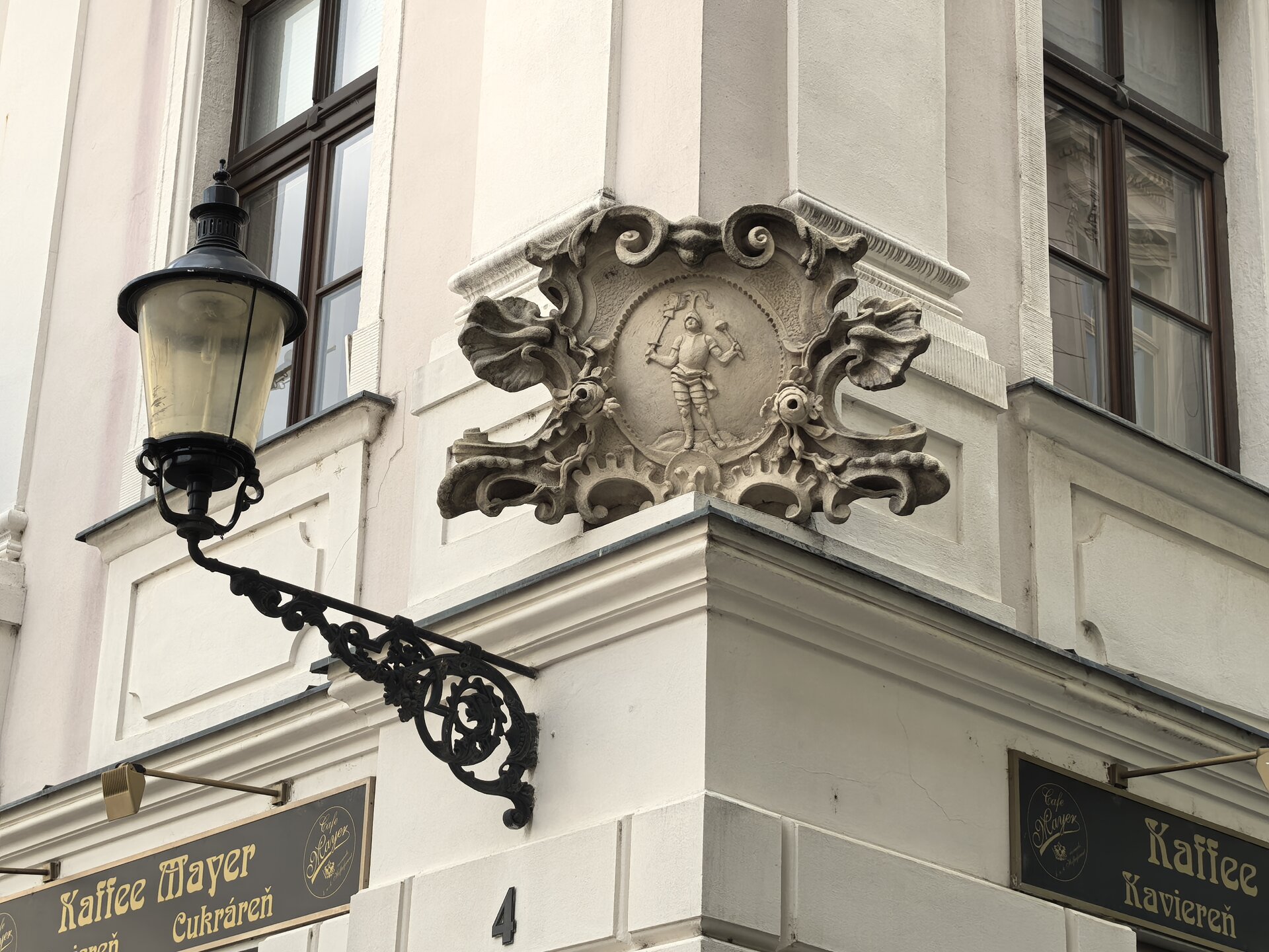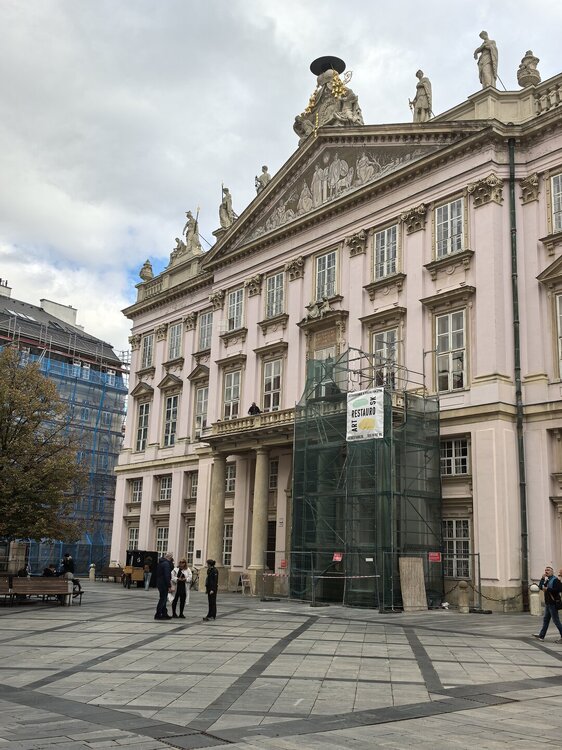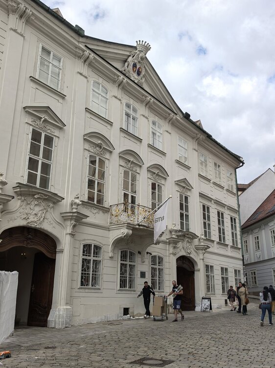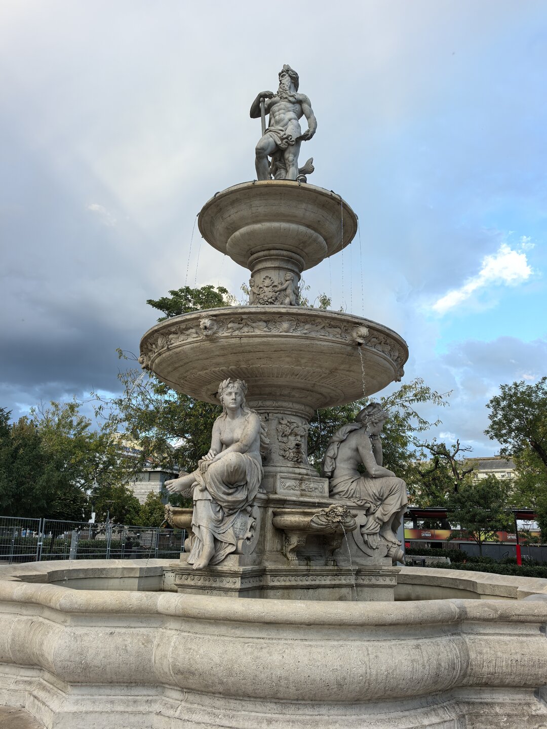 После дворца у нас была экскурсия в музей карет. Но здесь не только кареты, но и санки, и авто. Очень интересные модели. Есть кареты даже с туалетом, чтобы ехать не останавливаясь. Правда, туалет предусмотрен только для хозяина кареты, для кучеров таких изысков не имелось. VID_20250927_122819.mp4 Похоронные кареты А дальше у нас было свободное время погулять по парку вокруг дворца. Парк очень красивый. Сказали, тут где-то есть пальмы, но мы их не нашли даже коллективным разумом. Перед дворцом сигналы спецмашин сменились музыкой VID_20250927_130345.mp4 Тучки снова начали сгущаться, а наше свободное время стремительно убегать. Группу увезли на обед, а нас заберут чуть позже. Мы гуляем по центральной улице, но дождь нас гонит искать место обеда - мы выбрали кафе при музее, неплохое местечко недалеко от дворца. Жирненький гуляшик И заказали chicken wrap, чикен мы любим. Я никогда не интересовалась этим названием до этого, но оказалось, что это обычная шаверма 🤣. При этом в Вене совершенно честно было написано латиницей шаверма, поэтому мысль как-то и не закралась.)) Шаурма вполне себе сносная. Но первый раз я ела шаурму под бокал сухого розового. Очень! теперь рекомендую))