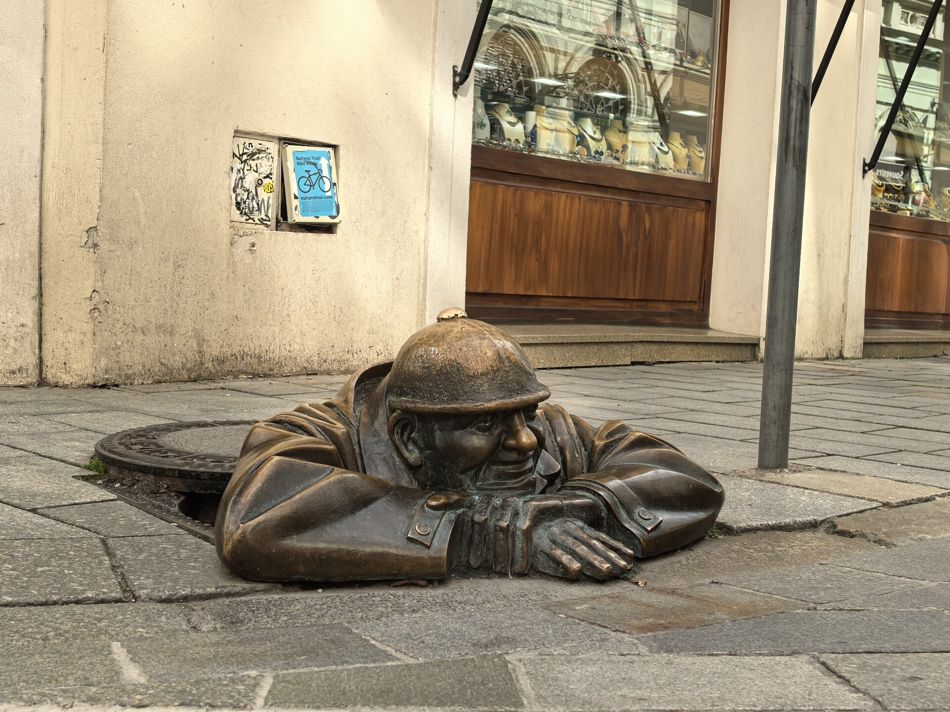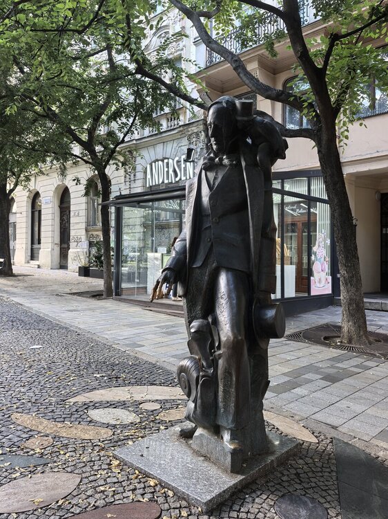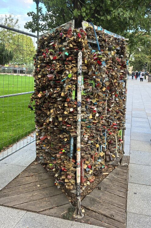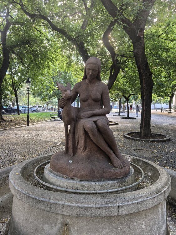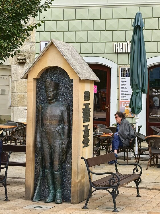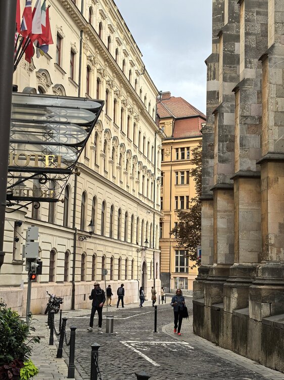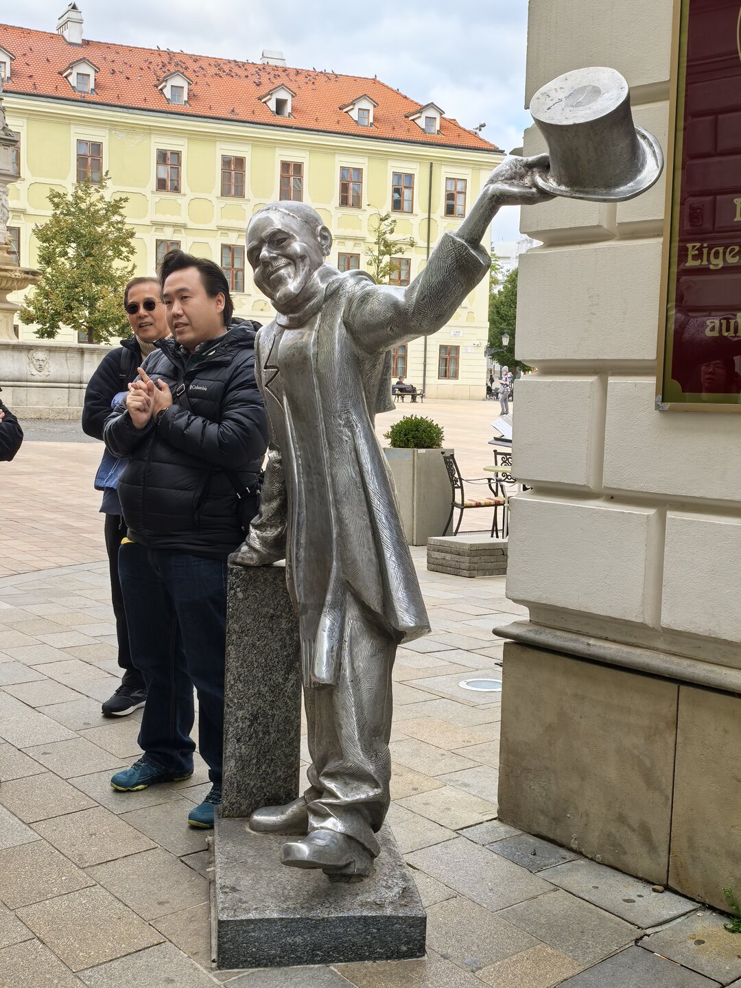 Сегодня мы прощаемся с нашей группой. Когда мы вышли на завтрак, группа как раз собиралась в холле уезжать в аэропорт. Мы же отправляемся гулять по Буде, т.к. переезжаем сегодня в Пешт. За завтраком увидела такую машину по... нарезке сливочного масла... Оно порционно падает вам на тарелку, свеже-отрезанное, мягкое. Но нужна ли для этого машина?... Когда есть порционные кусочки, для антуража, наверно, нужна. Итак, взбираемся на замковый холм. На лифте, конечно :) Идём мимо королевского дворца. Нестареющая классика. Буквально пару дней назад смотрела фильм Джонни Депа "Моди", и заметила в одной из сцен именно этот ракурс. Фильм снимали в том числе в Будапеште. На набережной как всегда много туристов, Жимешик повеселил конных. Спускаемся садами к набережной Одна из скульптур Михаила Колодко, в Будапеште их много, можно даже составить отдельный маршрут. О, привет! Ещё одна скульптура. Мужчина так долго переснимал один и тот же кадр, что нам надоело ждать. А вот и смотровая на Парламент. Автобус-амфибия идёт по своему маршруту Сворачиваем на улицу Фё Барочная церковь 18 века, которая оказалась закрыта Веста в такси на фоне венгерского парламента И плавно возвращаемся к Будайскому холму Памятник жертве революции 1956 года, который был казнен по достижению совершеннолетия. Один из военачальников, победителей в турецкой войне И поднимаемся к тому самому фуникулеру, на этот раз тут очень много людей. В отличии от вечера. На видео сняла всё удовольствие, выглядит как маршрутка в час-пик :) VID_20250928_131335.mp4 Тут я заметила конкурента своего милого Жимеша, для меня совершенно непонятна массовая истерия по поводу страшненьких куколок. Это моё личное мнение, оно может отличаться от других. Мы возвращаемся к отелю, парковка почти пустая. Здесь нас когда-то забирал автобус в 18 году. Такая жара была, конец августа. В отеле мы встречаем моих землячек - Ирину и Галину, которые улетают сегодня чуть позже, тепло прощаемся с ними, забираем чемоданы. Тут же на нас смотрит журнал со Словакией, а мы уже решили что отправимся в Братиславу, а не в Краков, т.к. в Кракове обещают дождь и температуру всего лишь +6. Кстати, потом прочитала что в Татрах уже 1 октября выпал снег, очень хорошо что мы туда не поехали, т.к. наша одежда не предназначена для таких температур. С нашим отелем (а это всё тот же Ибис за Будайским холмом) расположена станция метро, куда мы и нырнули, и через полчаса оказались у дверей уже другого отеля. Метро в Будапеште кажется игрушечным.