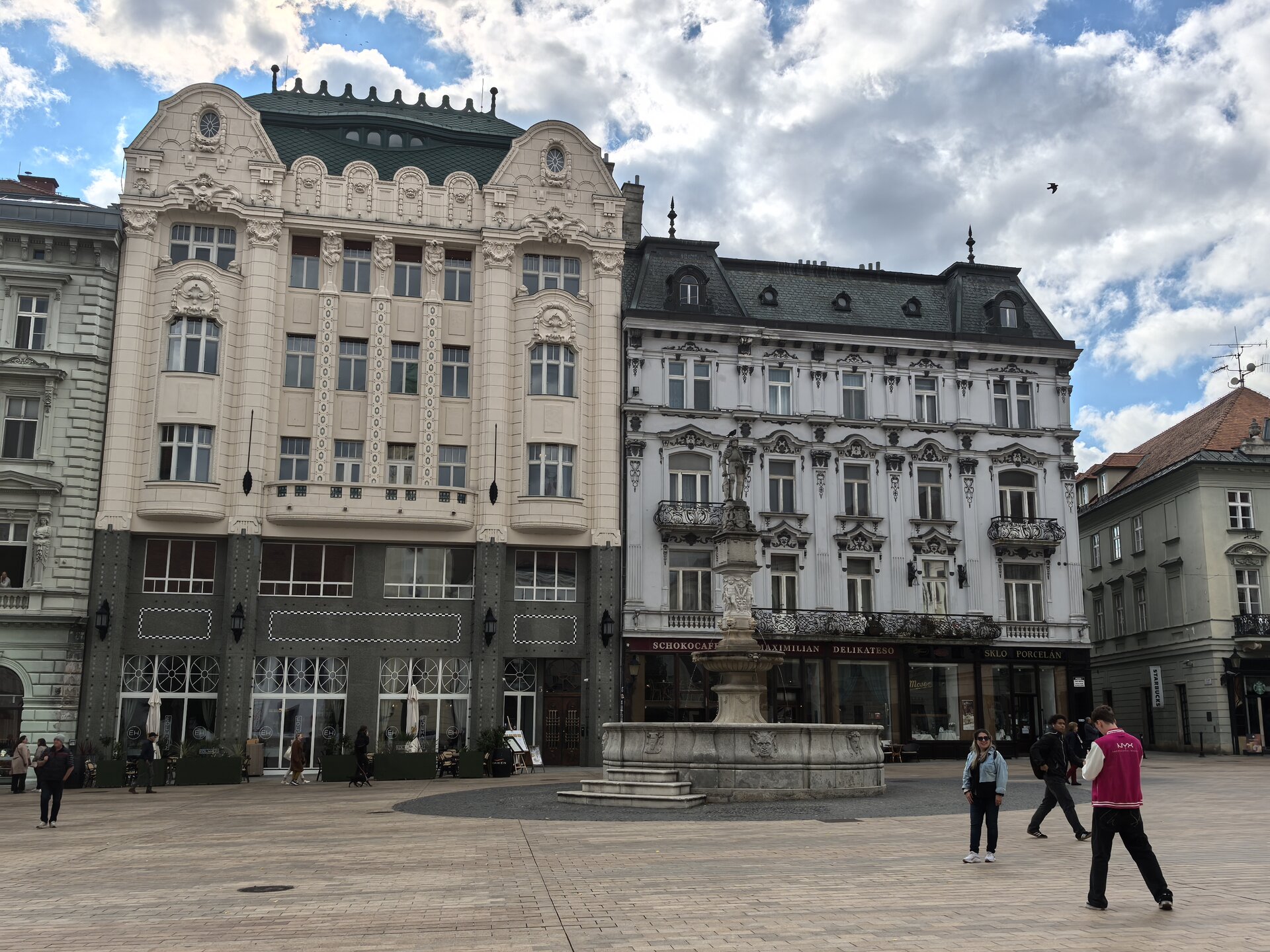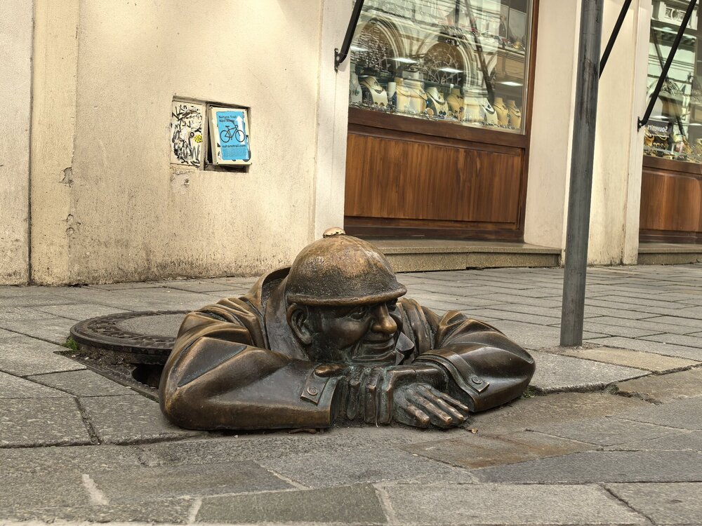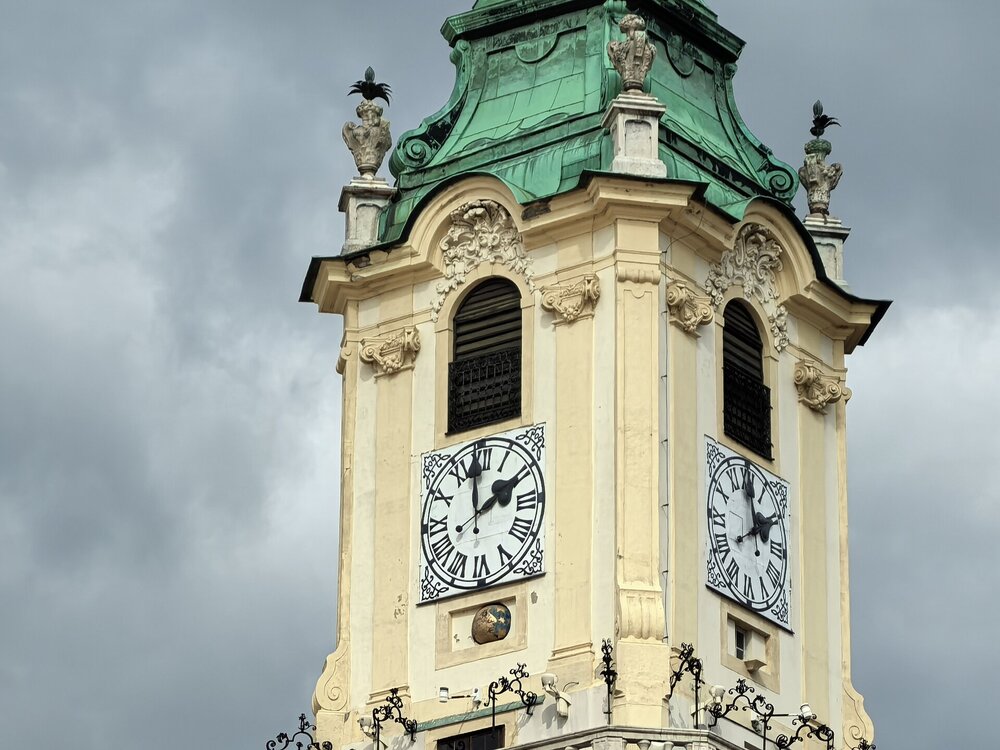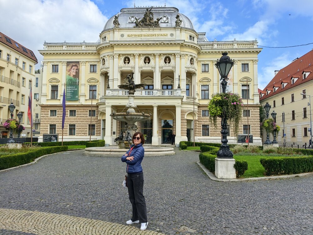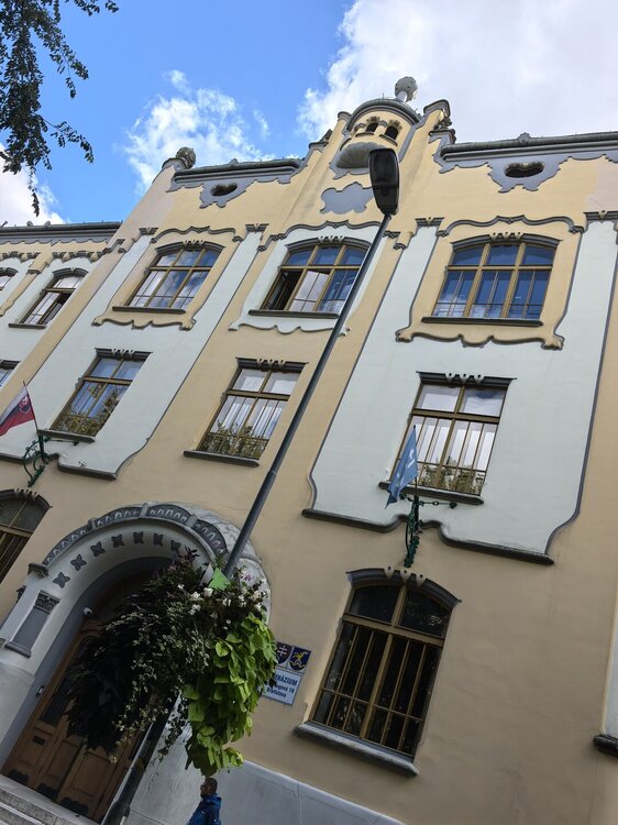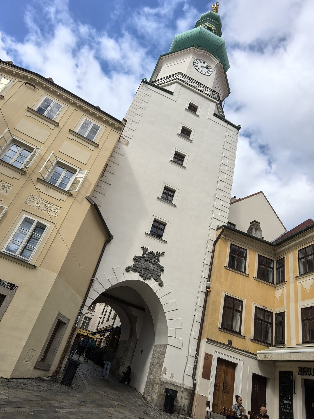 Мы идём достаточно узкой улочкой и вдруг перед нами буквально вырастает огромный Национальный Словацкий театр потрясающей красоты. Здание отстроено в конце 19 века в стиле неоренессанс, хотя датой основания театра считается 1920 год. Театра как вида национального искусства. И здесь изначально игрались спектакли на чешском языке. Перед зданием установлен первый декоративный фонтан города с названием Ганимед - иллюстрирует миф о боге Зевсе, похитившего ребенка и сделавшего его виночерпием на пирах Олимпа. Официальная ливрея трамваем Братиславы - красная. При подготовке к поездке, мы отметили для себя этот памятник на карте. Он называется "чумил" по-словацки, что значит зритель. Установлен в 1997 году. Но смысловая нагрузка у него другая - во время Второй мировой жители Братиславы прятались от бомбежек в канализации, и этот памятник как дань уважения профессии. Совсем недалеко на Ратушной площади стоит памятник Красавчику Наци - милому городскому нищему, который всегда благодарил таким жестом за милостыню. А вот и Ратушная площадь, здание Ратуши 13 века, конечно, перестраивалось неоднократно. Фонтан Роланда - фонтан 16 века в честь коронации в Братиславе императора Священной Римской империи Максимилиана II как короля Венгрии. По легенде статуя оживает в новогоднюю ночь и склоняет голову перед Ратушей в честь преданности. Роланд - это прозвище императора. Ратушная и она же когда-то Рыночная площадь испещрена узкими кривыми улочками, сделав пару поворотом Ратуша смотрится уже сквозь строения других зданий. По диагонали от Красавчика Наци установлен барочный чумной столб 1713 года, который венчает Дева Мария. Считается, что столб был изготовлен в Вене, но документально подтверждения нет. На улице Белой давным-давно жила добрая женщина Божена, которая помогала беднякам. После её упокоения местные жители видели призрак Божены, поливающий цветы. И вот как-то с ней столкнулся ученик пекаря, и она окаменела. Бывший архиепископский дворец 18 века, сейчас здесь мэрия и концертный зал. Эта часть города называется францисканским наместьем, здесь расположен францисканский монастырь. Он огромный, готическая стена костела упирается и подавляет светское здание. Этот монастырь основан в 13 веке и до сих пор действует. Здесь проводились посвящения в рыцари, а также монастырь выступал как образовательный центр, сохранились старинные рукописи, фрески и т.д. Напротив находится скромный по фасаду католический костел Богоматери Лоретанской. Его словно нарисовал ребенок, который не знает слова перспектива. Мы выходим к Михайловским воротам 13 века. Башня была реконструирована в стиле в барокко в 18 веке и на вершине установлена скульптура Святого Михаила. Мне напомнили ворота в польском Люблине. Здесь же проходит бойкая туристическая Михайловская улица со множеством кафе на любой вкус, мы выбрали, конечно, словацкую кухню. Это блюдо так и называлось Kamzik plate по названию кафе - традиционные пероги (по-нашему вареники), картофель с брынзой, беконом и сметанным соусом. Это очень вкусно! Когда я пробовала что-то наподобие в 19 году, мне совсем не зашло, многое зависит от повара.