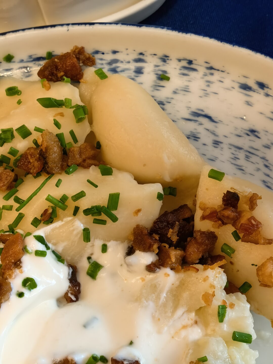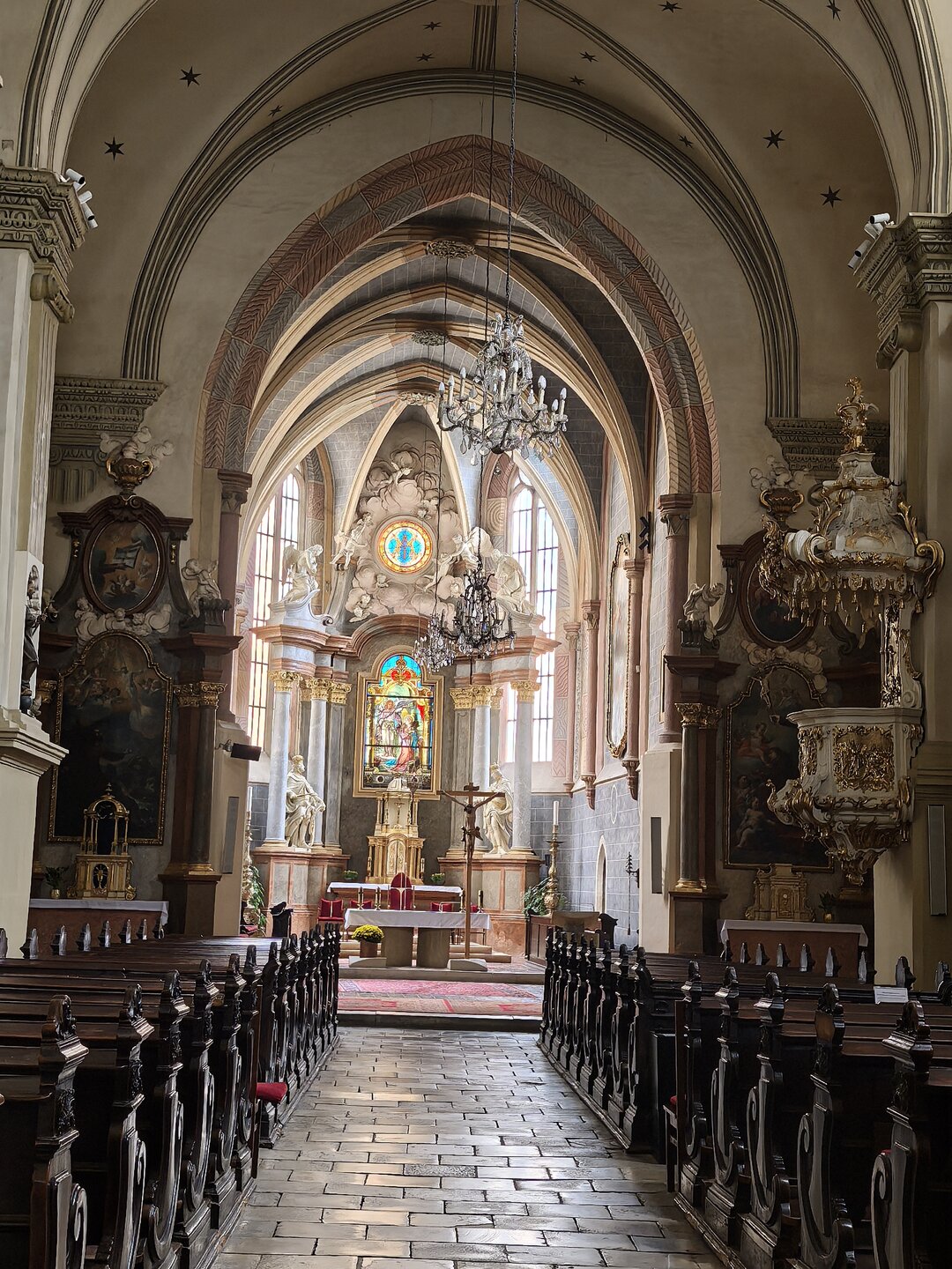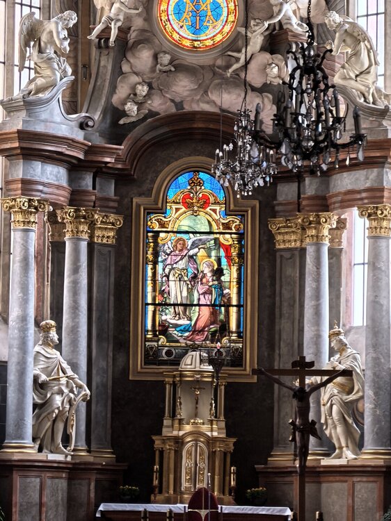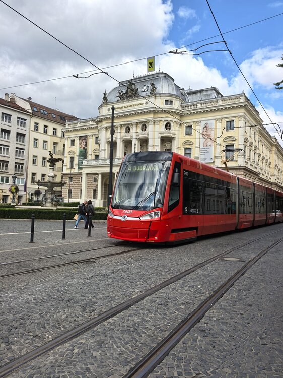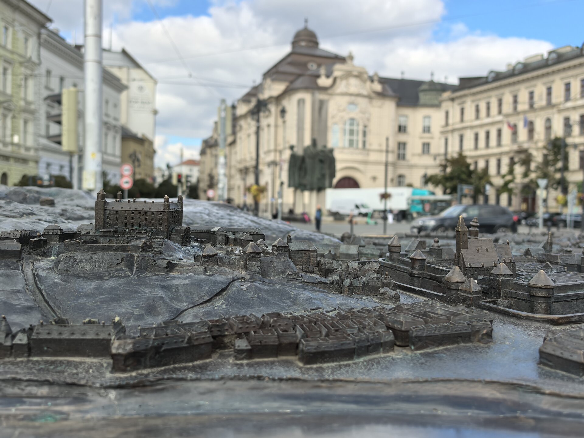 Мы идём достаточно узкой улочкой и вдруг перед нами буквально вырастает огромный Национальный Словацкий театр потрясающей красоты. Здание отстроено в конце 19 века в стиле неоренессанс, хотя датой основания театра считается 1920 год. Театра как вида национального искусства. И здесь изначально игрались спектакли на чешском языке. Перед зданием установлен первый декоративный фонтан города с названием Ганимед - иллюстрирует миф о боге Зевсе, похитившего ребенка и сделавшего его виночерпием на пирах Олимпа. Официальная ливрея трамваем Братиславы - красная. При подготовке к поездке, мы отметили для себя этот памятник на карте. Он называется "чумил" по-словацки, что значит зритель. Установлен в 1997 году. Но смысловая нагрузка у него другая - во время Второй мировой жители Братиславы прятались от бомбежек в канализации, и этот памятник как дань уважения профессии. Совсем недалеко на Ратушной площади стоит памятник Красавчику Наци - милому городскому нищему, который всегда благодарил таким жестом за милостыню. А вот и Ратушная площадь, здание Ратуши 13 века, конечно, перестраивалось неоднократно. Фонтан Роланда - фонтан 16 века в честь коронации в Братиславе императора Священной Римской империи Максимилиана II как короля Венгрии. По легенде статуя оживает в новогоднюю ночь и склоняет голову перед Ратушей в честь преданности. Роланд - это прозвище императора. Ратушная и она же когда-то Рыночная площадь испещрена узкими кривыми улочками, сделав пару поворотом Ратуша смотрится уже сквозь строения других зданий. По диагонали от Красавчика Наци установлен барочный чумной столб 1713 года, который венчает Дева Мария. Считается, что столб был изготовлен в Вене, но документально подтверждения нет. На улице Белой давным-давно жила добрая женщина Божена, которая помогала беднякам. После её упокоения местные жители видели призрак Божены, поливающий цветы. И вот как-то с ней столкнулся ученик пекаря, и она окаменела. Бывший архиепископский дворец 18 века, сейчас здесь мэрия и концертный зал. Эта часть города называется францисканским наместьем, здесь расположен францисканский монастырь. Он огромный, готическая стена костела упирается и подавляет светское здание. Этот монастырь основан в 13 веке и до сих пор действует. Здесь проводились посвящения в рыцари, а также монастырь выступал как образовательный центр, сохранились старинные рукописи, фрески и т.д. Напротив находится скромный по фасаду католический костел Богоматери Лоретанской. Его словно нарисовал ребенок, который не знает слова перспектива. Мы выходим к Михайловским воротам 13 века. Башня была реконструирована в стиле в барокко в 18 веке и на вершине установлена скульптура Святого Михаила. Мне напомнили ворота в польском Люблине. Здесь же проходит бойкая туристическая Михайловская улица со множеством кафе на любой вкус, мы выбрали, конечно, словацкую кухню. Это блюдо так и называлось Kamzik plate по названию кафе - традиционные пероги (по-нашему вареники), картофель с брынзой, беконом и сметанным соусом. Это очень вкусно! Когда я пробовала что-то наподобие в 19 году, мне совсем не зашло, многое зависит от повара.
