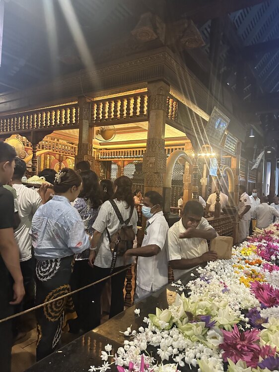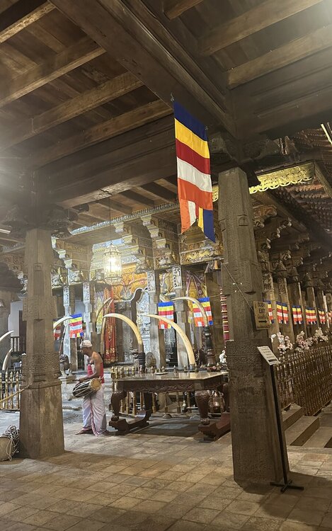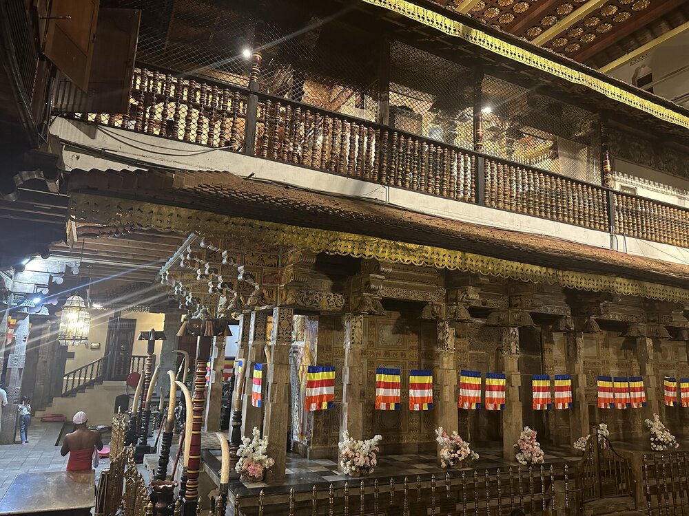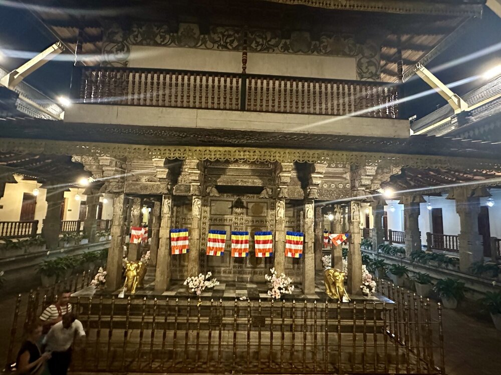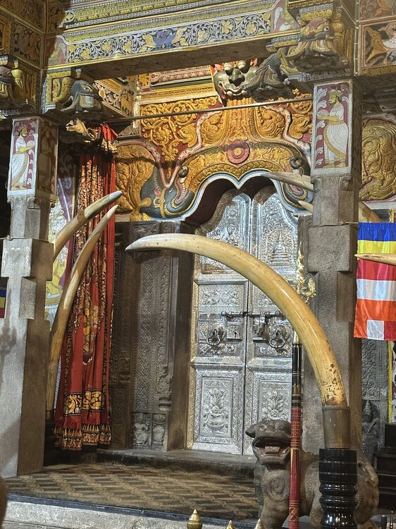 Зуб 🦷 хранится в золотом ларце в форме ступы, в котором, как в матрешке, спрятаны еще 6 сундучков. Согласно буддийскому ритуалу зубу следует помолиться, умыться из специального чана, очиститься от грехов в благовонном дыме и метнуть несколько рупий к основанию купола. Чтобы все это увидеть, храм нужно посетить вечером, днём храм закрыт. Зуб 🦷 можно было сфотографировать только сильно издалека, поэтому что вышло, то вышло .. 😁