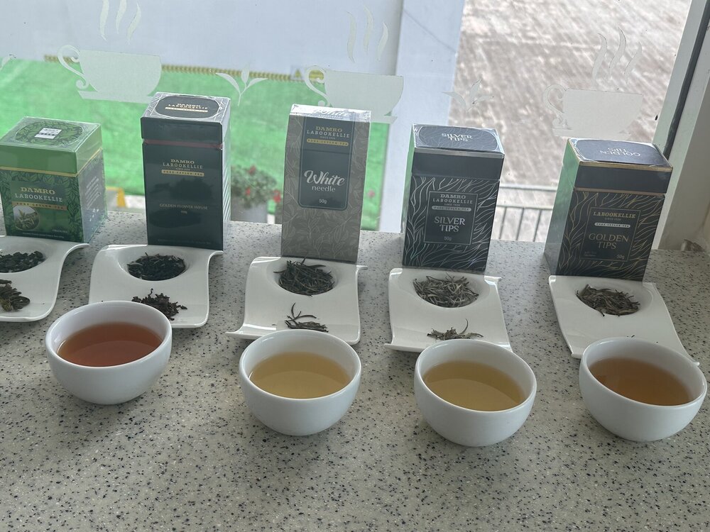 На дегустации попробовали несколько сортов чая, в том числе Пекое, English breakfast и несколько «замысловатых» из серии золотой и серебряный чай. «Замысловатые» совсем не впечатлили! English breakfast средне, он мелковат и не такой ароматный, как Пекое. Пекое лучший! Его и возьмем! Только не на этой фабрике, тут цены для туриков-дуриков! 😜