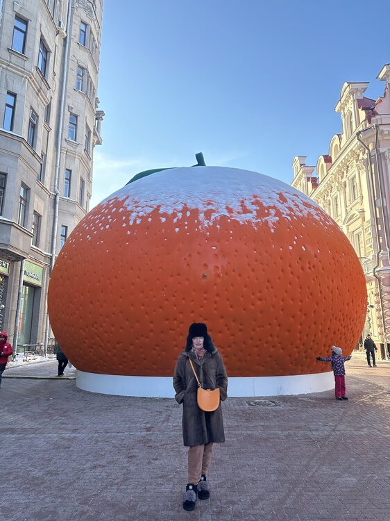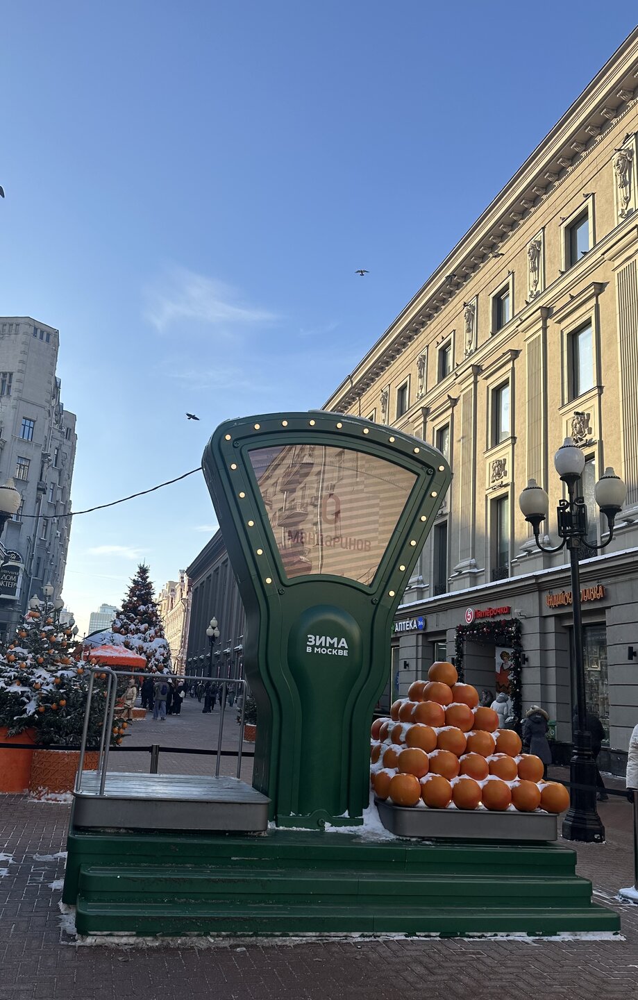 Специально выбрали самый холодный выходной, чтобы сходить на мандариновый Арбат и узнать свой вес в мандаринках! И что вы думаете ? Пришли , на Арбате людей нет, а к весам очередь на час ! Пришлись их просто сфоткать! Надо будет к рассвету подойти теперь! 😆