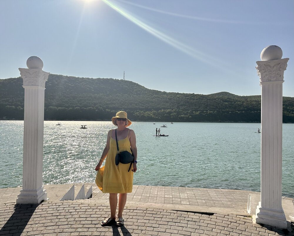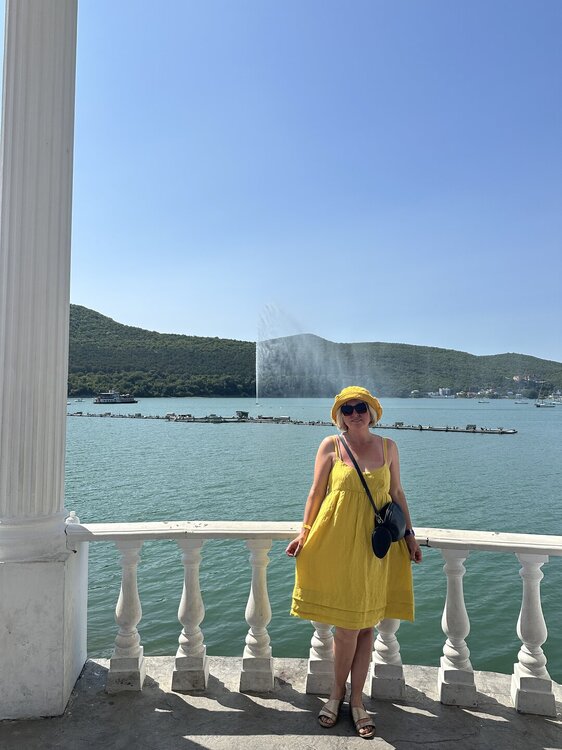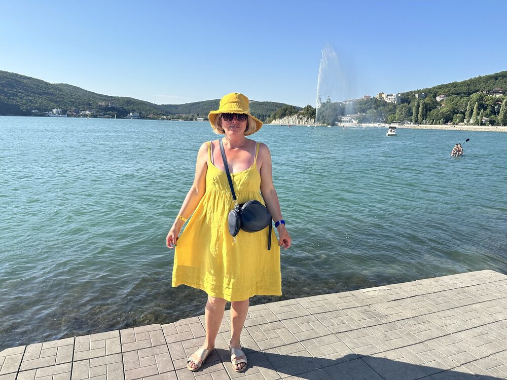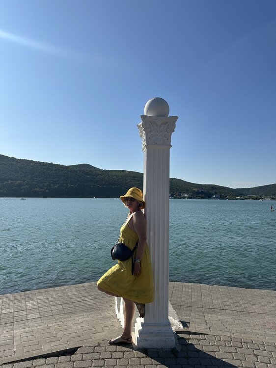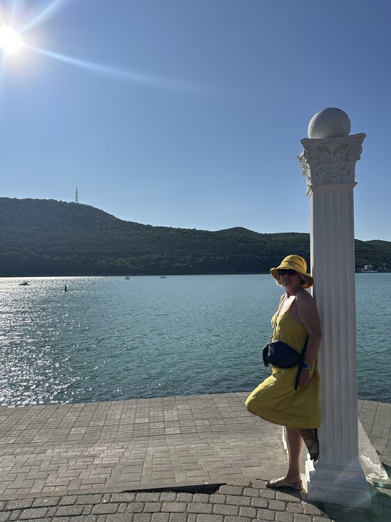 13.08.2025 день 11 и мы решили самостоятельно съездить на целый день в Кабардинку , чтобы провести там побольше времени и искупаться. Да и, откровенно говоря, стоимость экскурсии 1200 руб., а по сути это только трансфер. и ожидание автобуса показалась нам завышенной, ведь Кабардинка находится достаточно близко от Дивноморского. Но тут нас ждала небольшая засада … Оказалось, что прямого сообщения между Дивноморским и Кабардинкой нет, а если брать такси из Дивноморского в Кабардинку выходит те же 1200 руб.в один конец. Из Дивноморского такси в любом направлении почему-то бешеных денег стоит! Но мы не отчаялись, и решили ехать в Кабардинку двумя маршрутками через Геленджик, благо Дивноморское нам уже успело поднадоесть со своими толпами людей и отвратной едой в пансионате! Обошлась нам эта поездка всего 170 рублей в один конец ! А обратно несмотря на все перипетии с отсутствием Интернета мне каким-то чудом удалось словить Яндекс такси до Дивноморского всего за 700 руб.! Почему такси из Дивноморского в Кабардинку стоит 1200 - неясно! Кабардинка - курортный поселок в составе Большого Геленджика, находится на берегу Цемесской бухты среди зелёного горного массива и можжевелового заповедника. Сначала Кабардинка произвела очень приятное впечатление , очень милый и чистый поселок с красивыми домиками и широкой набережной, не то что наше убогое Дивноморское.