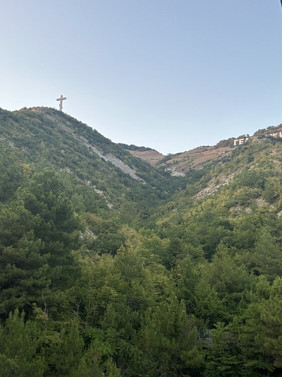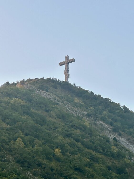 09.08.2025 день 7 трансферный. Переезжаем из Майкопа на море в Дивноморское. И лучшее, наверное, что есть в пансионате «Приморское» - это котик 🐈 Тимоша! Немного про пансионат. В этом туре все прекрасно, кроме этого «Приморского», с которым ТТВ работает уже более 3 лет, и, наверное, основным его плюсом является то, что он предоставляет хорошие скидки для групп туристов. Потому как после того, как мы увидели на его сайте в интернете цены на проживание , назвать это место дешевым, язык не поворачивается! Так как стоимость самого дешевого двухместного номера в сутки маленького и без ремонта была 8к, а побольше с ремонтом 15к! Да с трех разовым питанием! Но для сравнения в прошлом году роскошный пятизвездник на all inclusive на берегу Атлантического океана мне обошелся в 15к в сутки! А тут Чёрное море переполненое людьми и территория пансионата действительно большая, но, почему-то, сплошь засаженная серебристыми елями, и поэтому чем-то периодически напоминала мне то территорию больницы, то наш мавзолей на Красной площади! Зачем в пансионате на Чёрном море сажать столько серебристых елей, когда есть южные пиньи- это большой вопрос ! Также большой вопрос и к персоналу пансионата, неужели им настолько наплевать на туристическую фирму с которой они сотрудничают уже достаточное количество времени , и которая бронирует у них в общем-то приличное количество номеров, что им сложно держать у себя на рецепции один несчастный листик бумажки с расписанием наших экскурсий и временем трансфера на жд и в аэропорт ! Где-то через день они выбросили нашу бумажку а нам высказали, что, типа все туристы, проживающие в отеле , интересуются , как на наши экскурсии записаться , и они замучились им отвечать , что это для группы, а держать у себя эту бумажку и показывать ее нам по нашей просьбе им тоже очень напряжно, и вообще им наплевать на то, когда мы куда едем и уезжаем ! Такой вот сервис . Про питание отдельная тема. Еще при заселении меня сразил наповал запах советской школьной столовки тушеная кислая капуста с луком ! В общем сразу стало понятно, куда мы попали! Да выбор вроде есть, но есть особо нечего! Потому как всякие изысканные блюда из морепродуктов у них не получаются от слова «совсем», хотя попытки были! А постоянно есть салаты на дурацком невкусном майонезе, паровые котлеты, минтай и непонятные столовские булки, как-то не очень! Да овсяная каша, компот из сухофруктов и окрошка у них хорошо получались ! Но на этом все! Кто-то назвал меня привиредой, но какая есть, простите! Да и за 6 дней проживания в пансионате в Краснодарском крае в аагксте месяце в сезон арбузов , арбуз нам не дали ни разу ! Почему-то из фруктов были только апельсины и бананы … В общем в течение этих 6 дней меня только грела мысль о том, что как же классно , что мы живем здесь не за ту цену, которая указана у них на сайте ! Зато море здесь оказалось самым лучшим! Людей толпы везде , но в Дивноморском мелкая галька, вода иногда даже прозрачная , достаточно рано начинается глубина , так что можно сразу плыть и достаточно далеко! Вода была +27! А нам даже несколько раз приплывали дельфины ! Для сравнения в Геленджике пляж песчаный, но бухта очень грязная ! Мы искупались в ней, и заболели простудой ! А в Кабардинке очень мелко, огромные камни и очень мало места для купания . Но о Кабардинке чуть позже … IMG_2223.mov