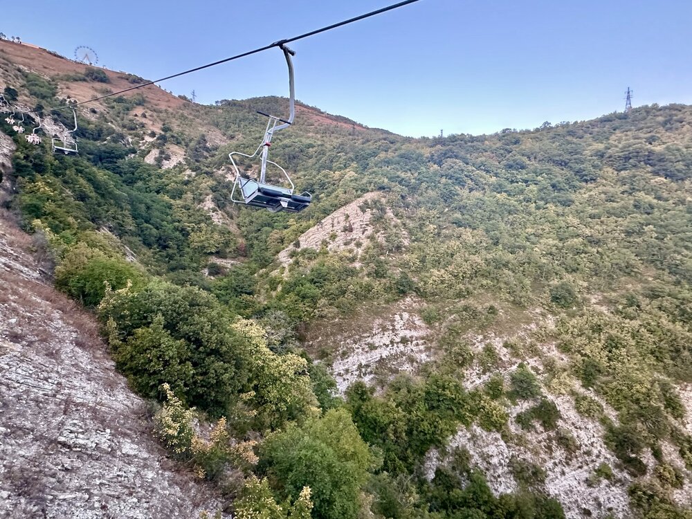 Канатная дорога Олимп оказалась двухкресельной, что добавило изюминку в процесс катания 😀 Ее протяженность составляет 1150 метров, высота подьема 420 метров. Подьем занимает 15 минут. IMG_1884.mov