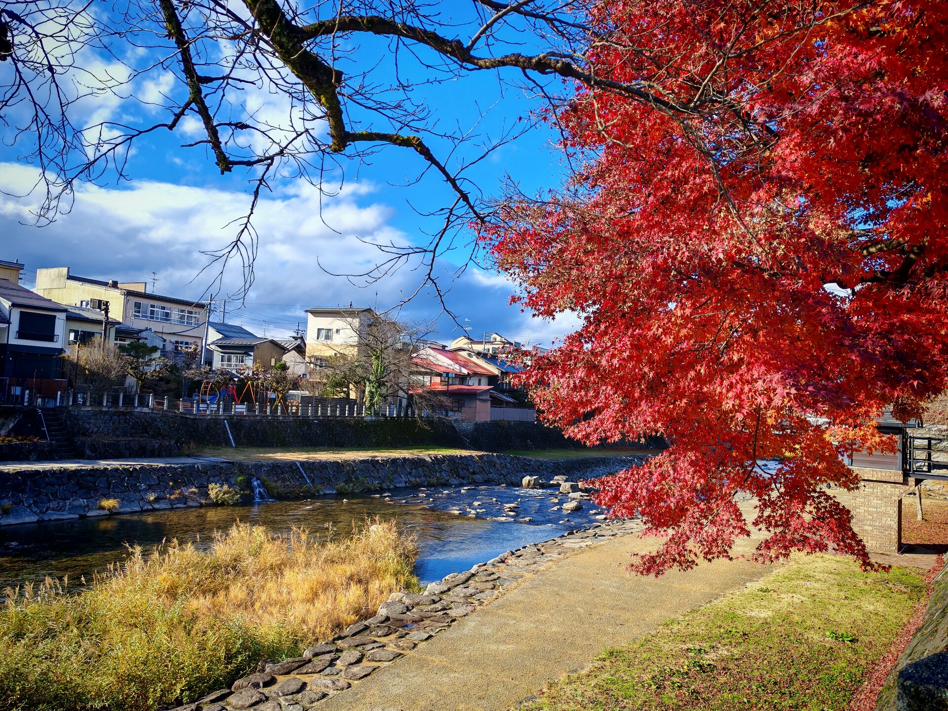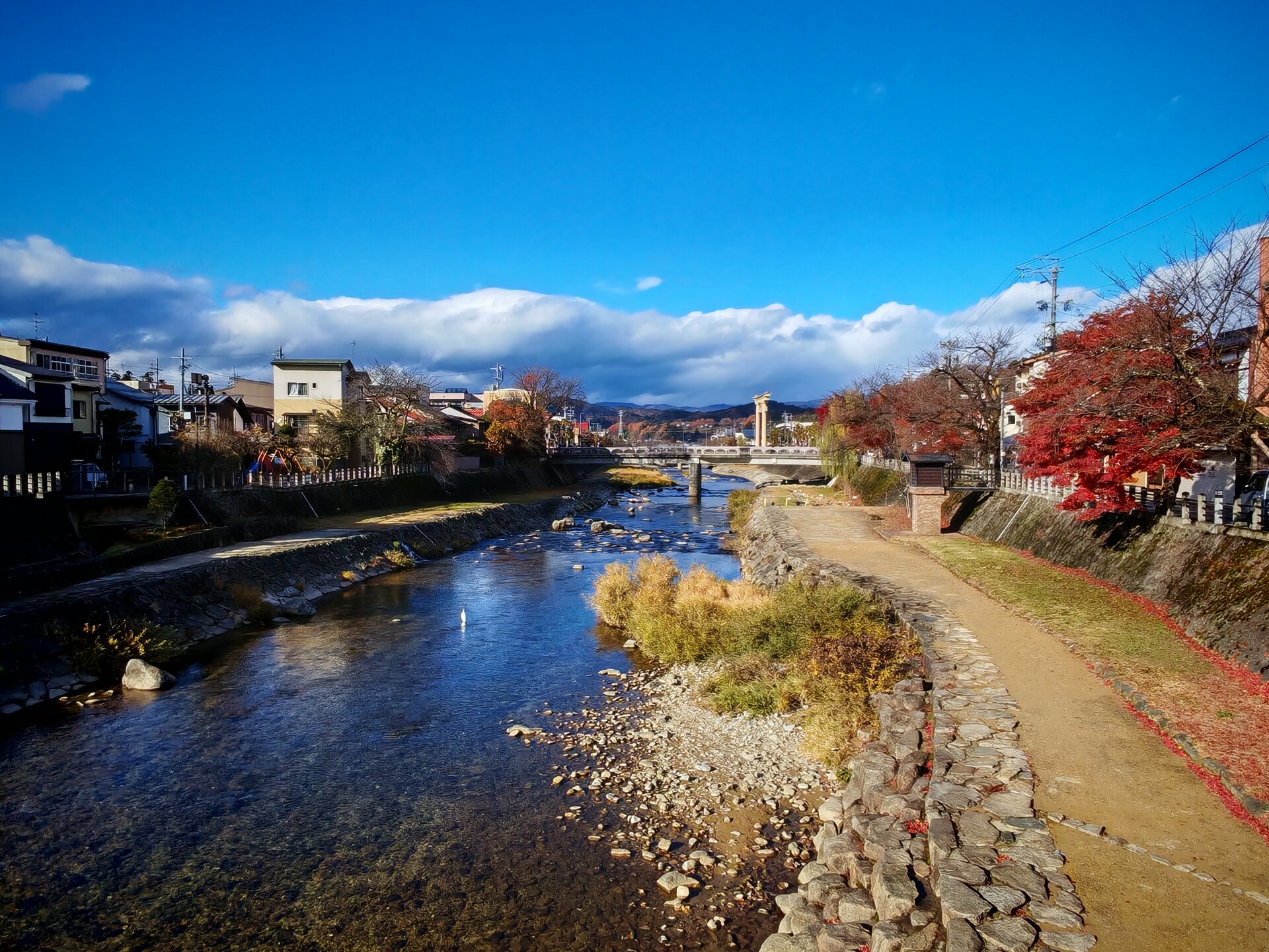 Через город протекает река Миягава. Солнышко ненадолго показалось, и мы чудесно прогулялись по узкой набережной.