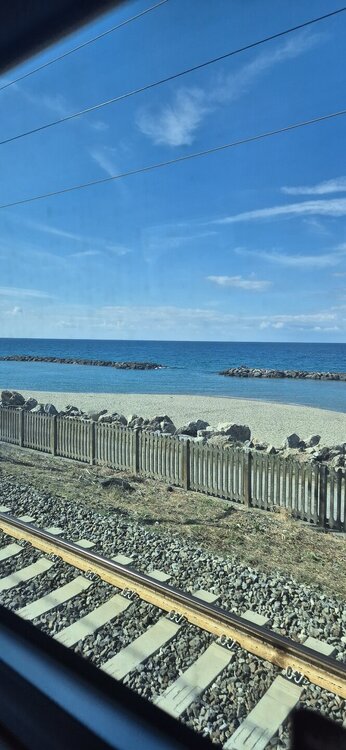 С утречка, а спала я, кстати, без кондиционера, с окном открытым, хоть днем и было достаточно жарко, так что вечером приходилось быстро одежку постирать- освежить, так вот, с утречка бегу на вокзал, покупаю билет до моря- до Катандзаро Лидо и, наконец-то, кофе! Капуччино с вкусной пенкой, как всегда! План был ехать до Катандзаро, который не Лидо, погулять там. Это столица Калабрии, где всегда ветер, так как город между двумя морями расположен, а оттуда уже на пляж я хотела, но дорога до Катандзаро была замороченной, вокзал там далеко от центра очень, нужно автобуса ждать, а автобусы в Италии не такие четкие, как поезда. Вот, приезжаю, короче, сразу в Катандзаро Лидо! Там тоже ветерок! И- вот оно- утреннее море Ионическое! Че- то на Анталию пейзажик похож) Гуляю по городку, покупаю спелую лопнувшую хурму... На центральной площади на скамейках дедушки, как всегда, тюленят) Их тут не видно, но они есть! На ликвидации магазина приобрела брюки за 10 евро, выглядят они, конечно, дороже, я такое очень люблю откопать! Бары кругом, музыка звучит итальянская, приморский городок типичный) В рамках своей швободы я глянула на карту, а потом на табло departures на вокзале и решила дальше ехать в город Кротоне, доселе мне незнакомый. Но расположен он прикольно, достопримечательности в наличии, недавно там аэропорт даже открыли, короче, Кротоне пиарят, скоро будет центр курортной жизни там! Билет первого класса оказался на 50 центов лишь дороже билета стандартного, ясное дело, тут сам бог шикануть велел, покупаю я первый класс этот. Уютный поезд, а как бонус дали ещё салфетку освежающую! Виды- ну, Тоскана почти) Приехали! Иду в центр. Кротоне какой-то несимпатичный мне показался, центр такой себе, не гармоничный стилистически. А море красивое, пляжи, вода бесплатная, чтоб ножки помыть. Море чистое, сардинки там резвятся на мелководье. Я созерцала и ела фрукты всякие. Потом был апероль, посещение старого города, колбаску, гляньте, как забавно мне мясник упаковал) Памятник интересный- павшим в Первой мировой войне... Ангел солдата держит. Посмотрим, как будущее у Кротоне сложится, полюбят ли его туристы. Мне город чуть Пескару напомнил. Обратно я ехала не до центра Ламеции, а до станции Sambiase, чтобы оттуда потом пешком в центр пойти. Набрела на вкусную пиццерию, купила там аранчини и крокеты мясные. Владелец сунул визитку, напиши, мол, отзыв в Google. Я написала, а чего же не написать, если еда мне понравилась) Купила еще сыр пекорино с трюфелем по пути. Опять темнота на мягких лапах подкралась и Ламеция тоже особый шарм приобрела. Улицы бурлят, милая атмосфера, водители всегда пропускают, хоть где ты там дорогу решишь перейти) Провожу последнюю ночь в Ламеции и утром рву когти в Козенцу! А там, на минуточку, аж целый объект ЮНЕСКО наличествует!