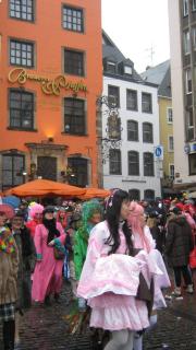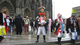 Традиционно и официально открытие Кельнского карнавала происходит в 11.11 на площади Старого рынка...А на 8.30 возле Собора была назначена встреча группы с гидом, но уже в это время десятки и сотни людей в разнообразнейших костюмах стекались к месту праздника под непрерывный аккомпанемент мелкого моросящего дождичка...
