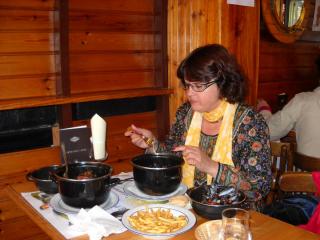 В меню были вроде как "какая-то" закуска, основное блюдо на выбор - типа охотничье жаркое или фондю (а может, раклет) и напиток тоже на выбор...