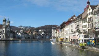 И прошло-то всего чуть более получаса, а Люцерн уже встречал нас ясной погодой и таким ярким солнцем (днём уже градусов 5-7 точно было), что я сразу пожалел о своем категорическом нежелании брать в эту поездку солнечные очки...