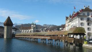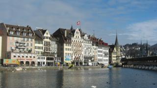 Люцерн, уютно расположившийся на берегах озера и вытекающей из него реки Ройс, в окружении заснеженных вершин, с его лабиринтом старинных улочек и площадей, мостами, шпилями, фонтанами, разрисованными фасадами домов, трогательным львом, похож на картинку из книжки сказок, в которой хочется остаться навсегда...И вот это "навсегда" мы всеми силами старались втиснуть в отведенные нам несколько часов...