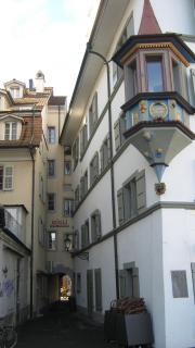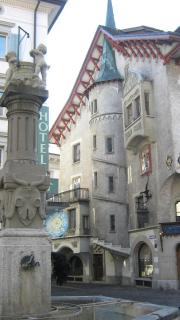 И в котором, оказывается, также как и в других городах немецкоязычной части Швейцарии, вчера тоже было открытие карнавала (называется он Фастнахт, празднуется аж с 12 века, и в чем-то напоминает Хелоуин. В течении нескольких дней, и днем и ночью, фантастические чудовища, монстры и призраки наводняют улочки и площади города)...Но сегодня, по словам Натальи - "выходной" после вчерашнего, хотя впоследствии выяснилось, что не у всех...