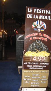 Хотя один раз в этом туре почти пришлось, только в буквальном смысле...Наталья имела "неосторожность" рассказать о ресторанчике на Кур Салейя в Ницце, о котором мы не знали...Заказывая в нем кастрюльку мидий по цене всего на пару-тройку евро выше (€14.90), чем в соседних заведениях, можно, разделавшись с предыдущей порцией, абсолютно бесплатно заказывать следующую...А так как мы с женой к мидиям сильно не равнодушны, то, естественно, вечером мы оказались в этом ресторанчике с целью убедиться в реальности существования такого аттракциона неслыханной щедрости...Все так и вышло, кастрюлька сменяла кастрюльку, но все равно все имеющиеся варианты приготовления мулей в различных соусах продегустировать не удалось...Жена закончила на четвертой, а я на пятой...А вот не надо было вообще есть прилагаемую к каждой кастрюле картошку-фри )