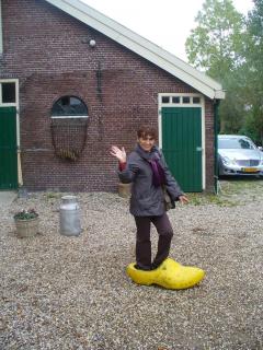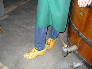 Второй пункт турпрограммы - сыроварня и производство деревянных башмаков- кломпов,самой удобной обуви голландских крестьян.Заезжаем в тесный сельский дворик. Ничего особенного: дом с жилыми комнатами, хозяйственные постройки.В просторном сарае жуют сено черно-белые коровы, по двору бегает игривый черно-белый котенок. Два веселых сельских парня показывают процесс изготовления домашнего сыра,а затем и башмаков. Потом угощают сыром, предлагают примерить нехитрую,но красиво раскрашенную обувенку и купить понравившуюся, а заодно и многочисленную сувенирную продукцию в их магазине.Доход от бизнеса, видимо, есть, так как в день семья принимает 5-7 туристических автобусов. Вслед за нами приехали то ли корейцы, то ли японцы.