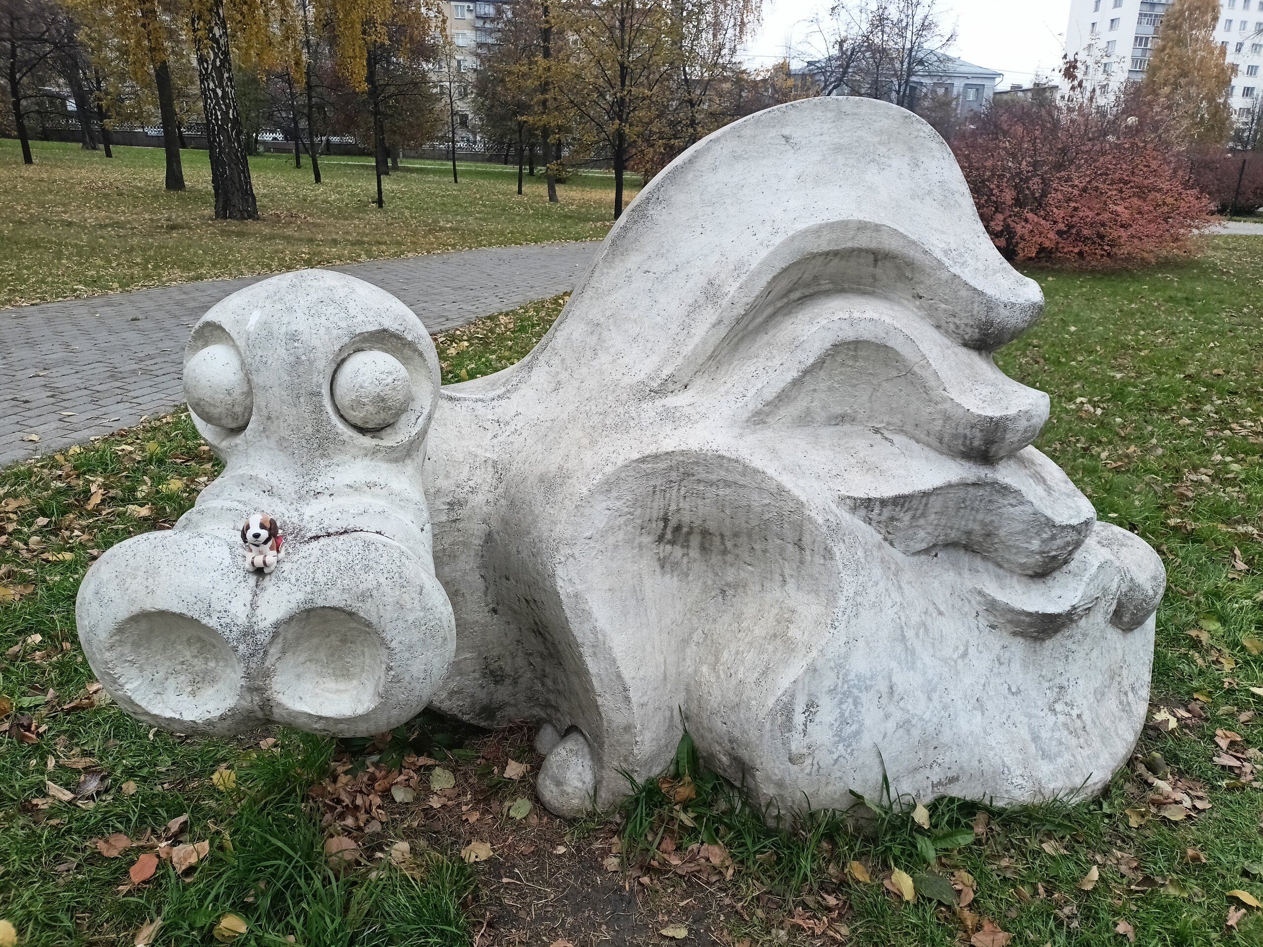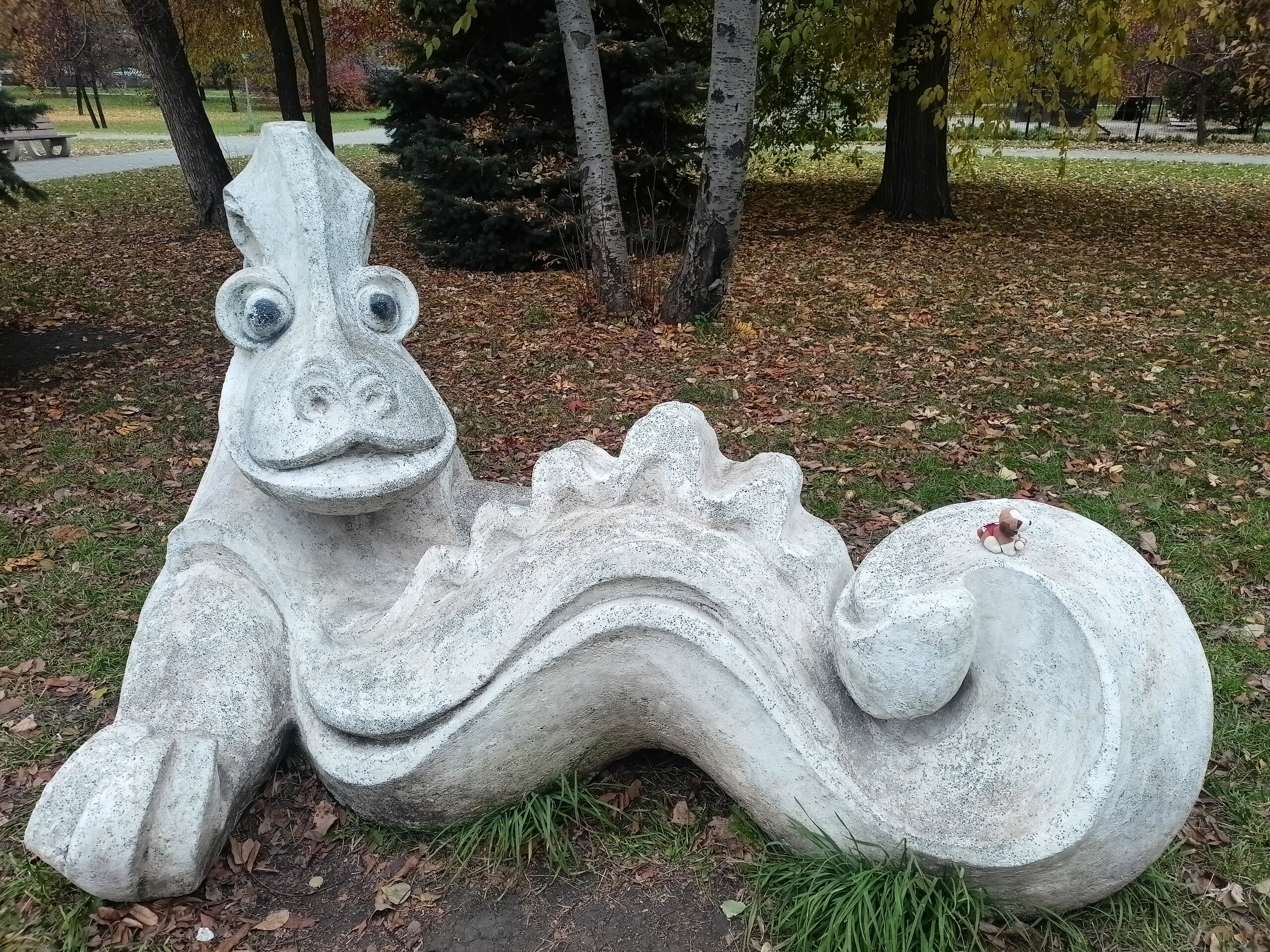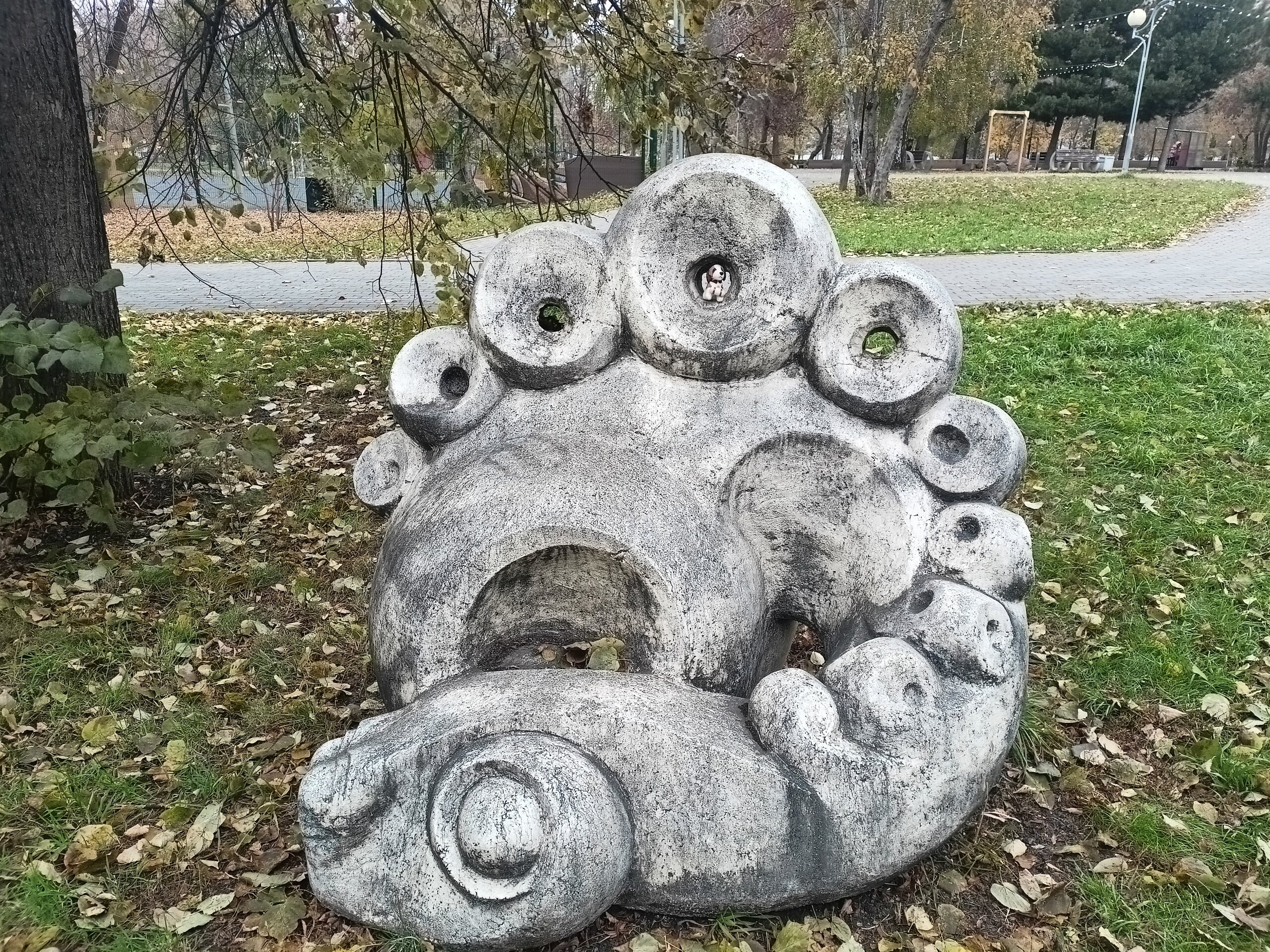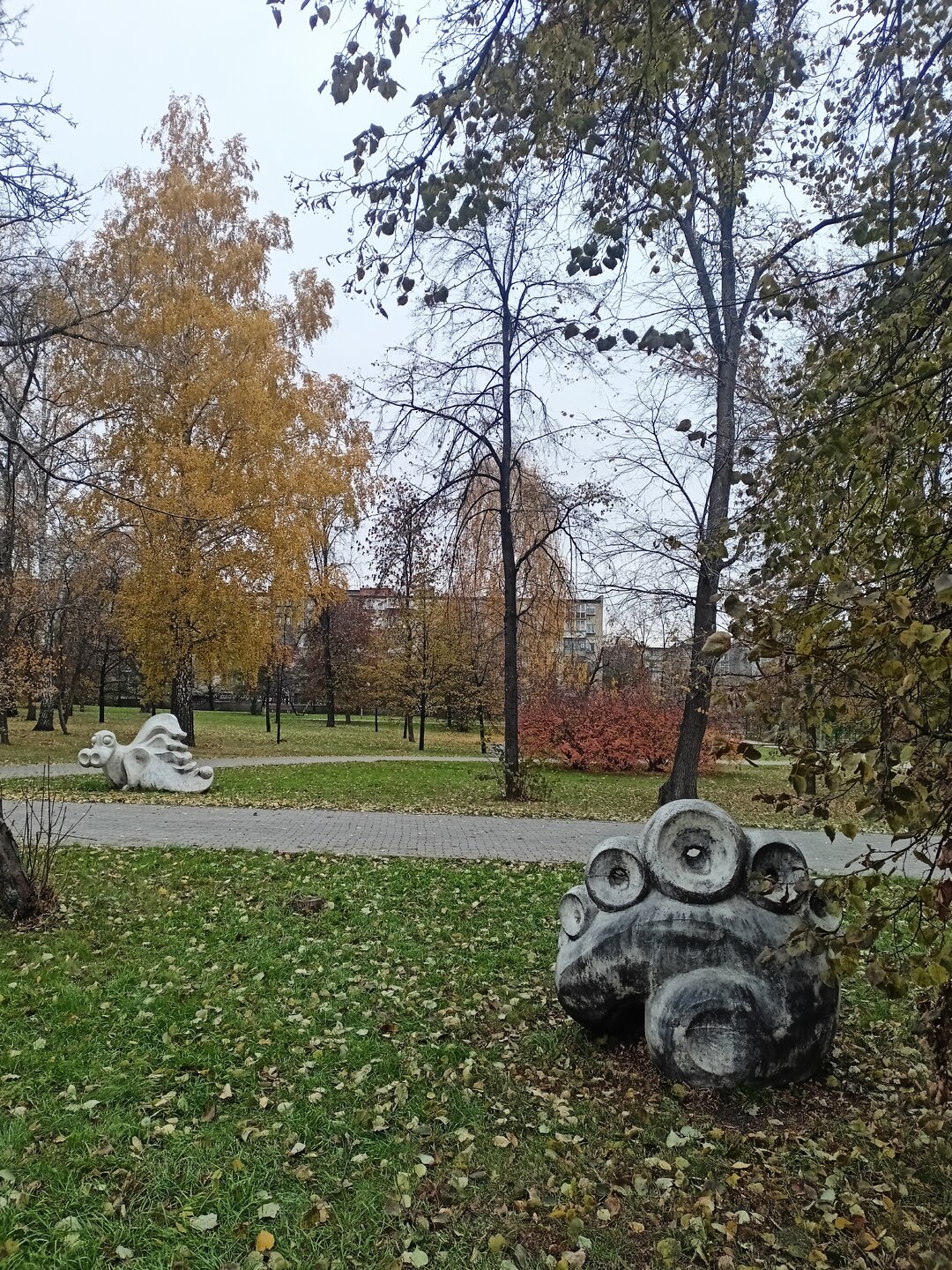 Карта подсказывала, что в этом парке есть жанровая скульптура "Улитка". Не знаю нашла ли я ту самую улитку или это все они🤣 Надо бы хоть в интернете о них прочитать. Может там глубоким смыслом все наполнено) Смотрится неплохо. Скульптуры , как мне кажется, вписались в парк. Даже первая мысль была об одном из итальянских парков - Сакро Боска (Священный лес), но там "чудища" были намного больше