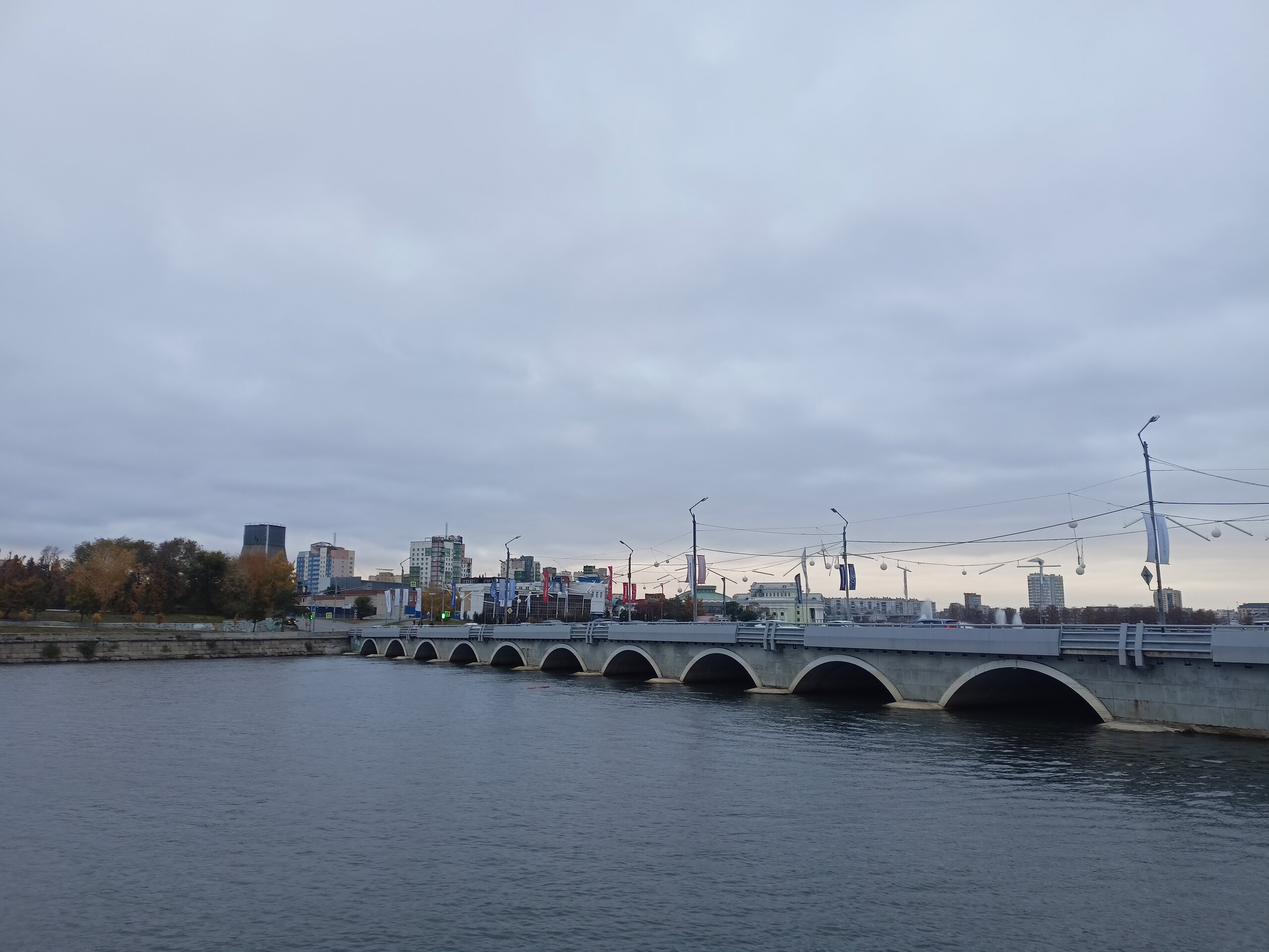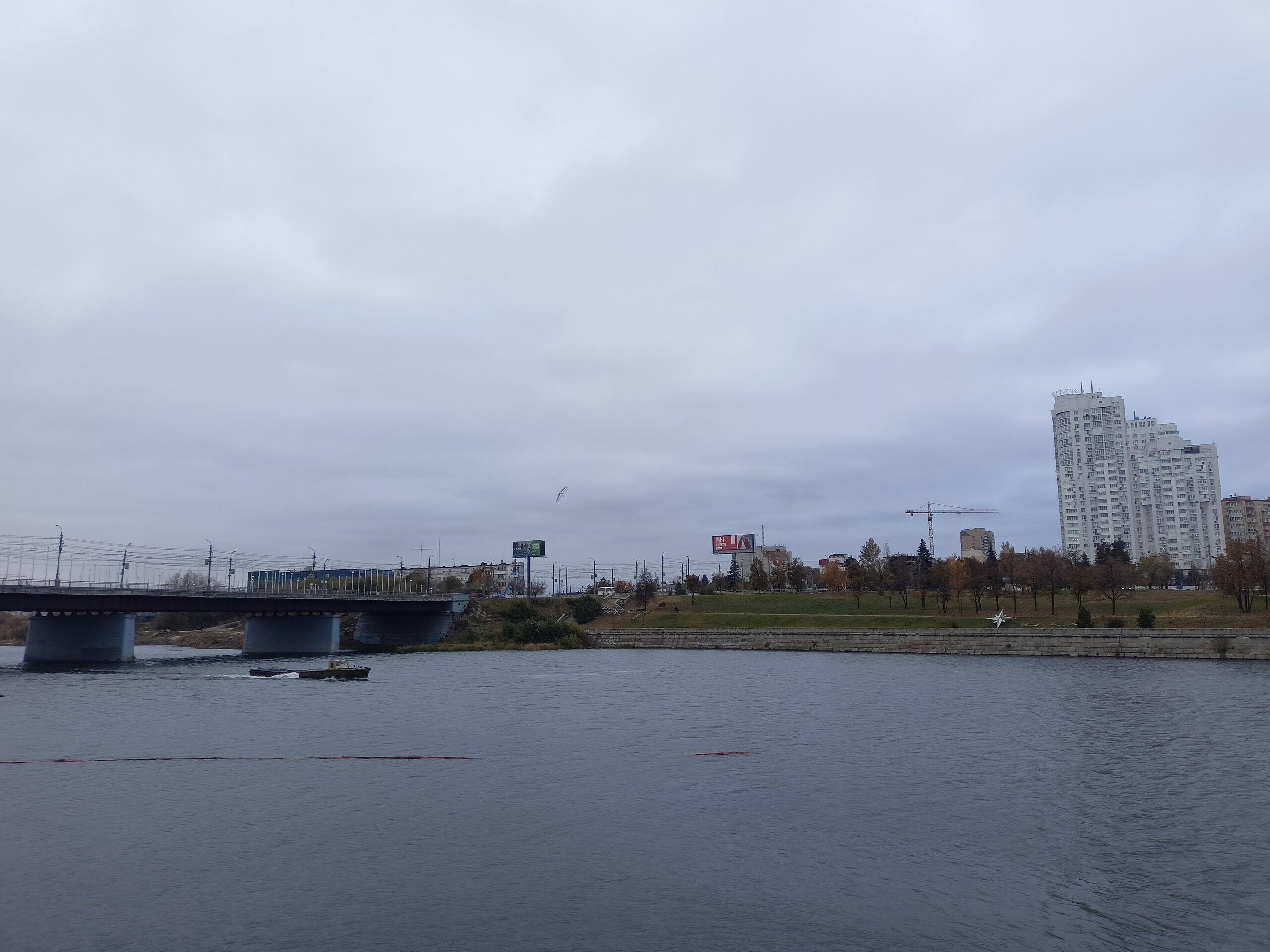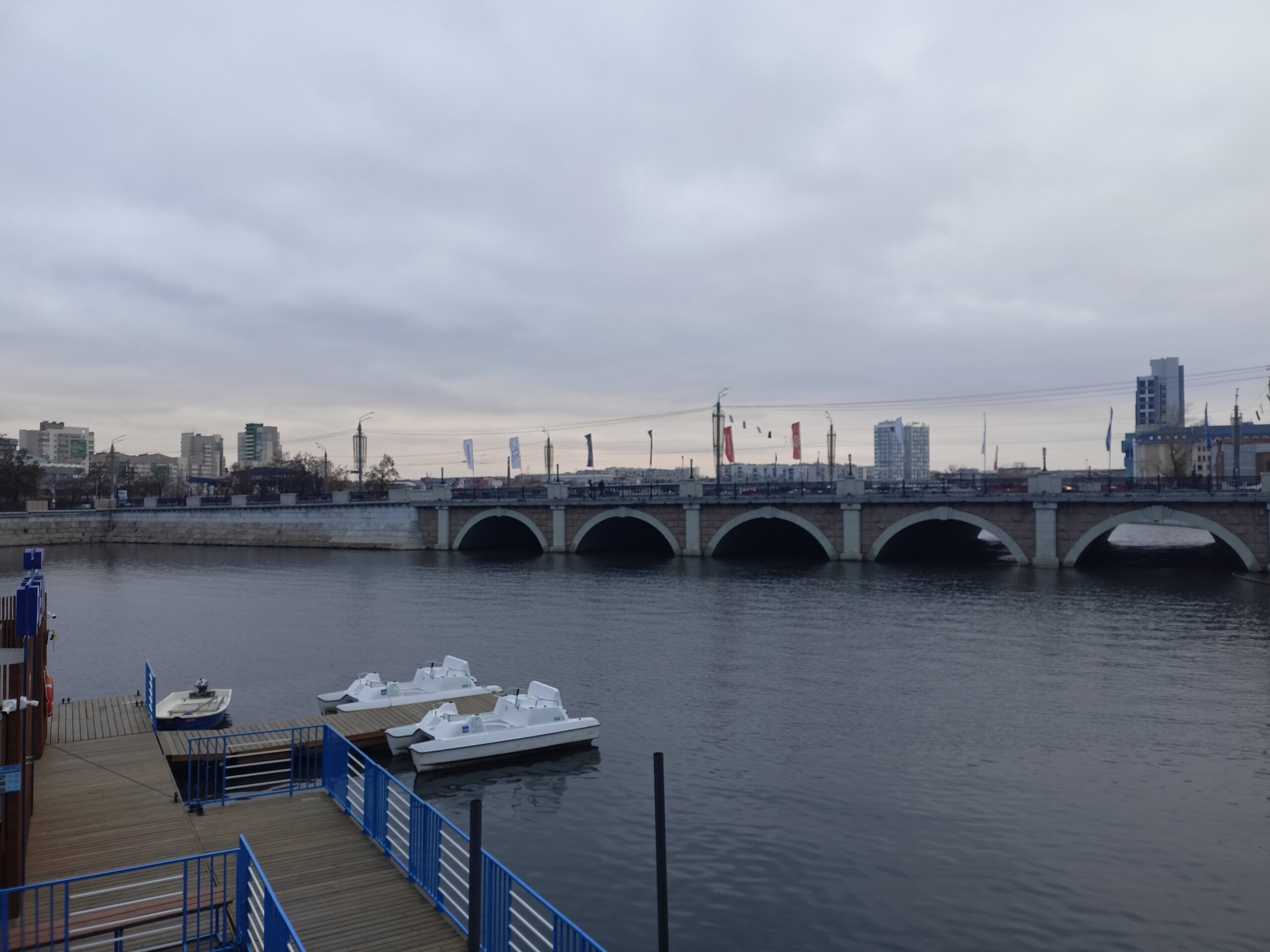 Проезжали по мосту через реку Исеть, где я нынче в мае каталась на кораблике и на которой недалеко расположен порог Ревун.