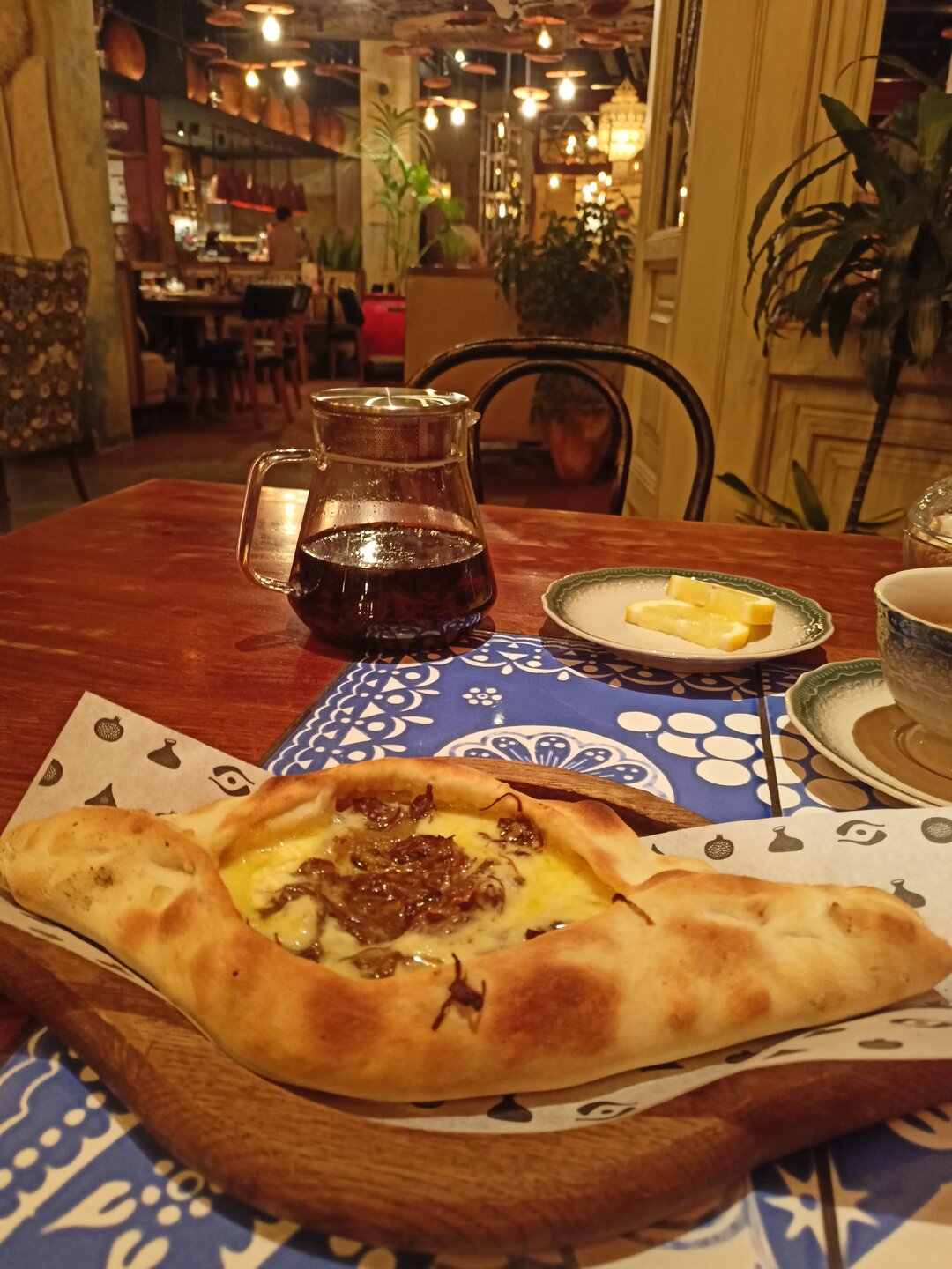 Выбор пал на "Итальянку", а меня опять разворачивают - мест нет. Ну наконец то захожу в соседнее место под названием в стиле хачапури и вино, а я избегаю подобных названий, мне они просто не нравятся. Но время уже не даёт мне дальше выбирать.