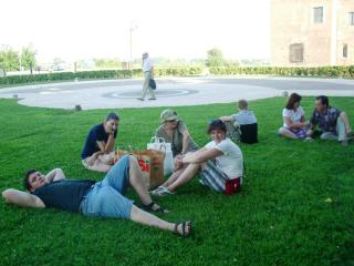 Опубликовано 5 августа, 201213 г. Автор comment_239653 Следующие два дня прошли очень сумбурно. Все дело в том, что наконец проявилось действие кондиционера в автобусе. Я заболела практически первая, температура где - то около 39 да плюс на улице около 38, итого, 77 градусов выше нуля. Вся группа оказывает первую помощь, но состояние кошмарное, хожу, как зомби. Информации в голове - ноль.Так что просто отдельные виды. Парма. Мантуя. Возле Палаццо Те местные скауты играли в "Зарницу" Наша уставшая компания. Практически "Завтрак на траве", не Клод Моне, конечно, так неизвестный фотограф. Падуя. Здесь испытала очередное потрясение от посещения Капеллы дельи Скровеньи с фресками Джотто. Виченца. Заканчивается еще один день. Поднимаем бокалы с аперолем, в очередной раз Лена окунула нас в жизнь итальянских гурманов. Но кое кто в этот день пил горячее молоко (не будем показывать пальцем, хотя это была я). Изменено 6 августа, 201213 г. пользователем oksana_90 Жалоба