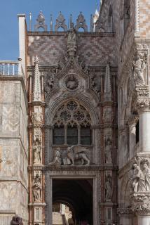 Главный вход во дворец называется Порта делла карта (Бумажные ворота), так как здесь в старину сидели скрибы (писари) с бумагой и гусиными перьями за ухом, готовые за мзду настрочить любое прошение или жалобу главам различных ведомств, членам синьории, а то и самому дожу. Порта делла карта оформлен в витиеватом готическом стиле и напоминает вход в храм.