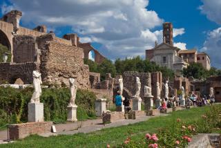 В юго-восточной части Форума располагался Священный участок Весты, на котором находились храм Весты (Tempio di Vesta) и Дом весталок. Сейчас можно увидеть небольшой фрагмент изящного здания храма, несколько статуй на пьедесталах, увитые дикой розой развалины Дома весталок и остатки портика, окружавшего двор.