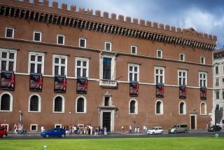 С западной стороны Площади Венеции находится Дворец Венеции, построенный Бернардо Росселино по проекту Леона Баттиста Альберти. В этом здании располагалось посольство Венеции в Риме. Будучи венецианской собственностью, он во время оккупации Венеции австрийцами принадлежал австрийскому императорскому правительству вплоть до 1916 года. Позже здесь заседало правительство Муссолини.