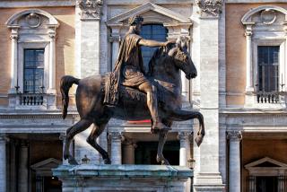 В центре Капитолийского холма возвышается бронзовая конная статуя императора Марка Аврелия.