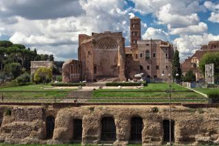 Храм Венеры и Ромы. Был сооружен по проекту императора Адриана во II в.н.э. Он состоял из двух целл (внутренних частей), посвященных двум богиням. Вход в каждую целлу обрамляли колонны, также целлы были соединены общей колоннадой.