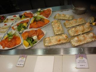 Опубликовано 11 ноября, 201213 г. Автор comment_263455 К этому времени пришло время обеда я спустилась на 5 этаж в кафе самообслуживания. Понравилось, очень большой выбор, вполне демократичные (для Парижа ) цены. Это закуски. Кроме того были отдельные раздачи с пастой, с основным блюдом, с блюдами на гриле , причем все это готовили при тебе. А также фруктовые салаты, просто фрукты, десерты, всевозможные напитки, вино в маленьких бутылочках и на розлив в графинчиках. Вобщем обед состоялся. Силы были нужны, т.к. предстояло посетить главное событие этого дня в соборе Нотр Дам -вынос Тернового венца Спасителя. Жалоба