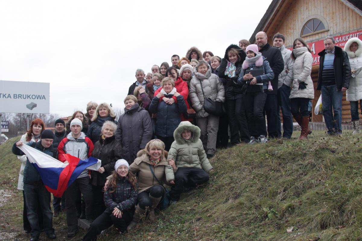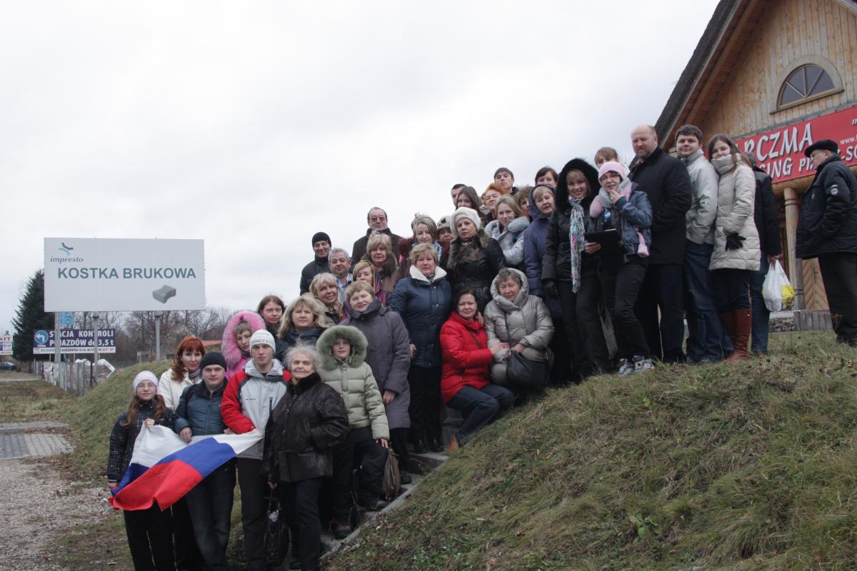 Опубликовано 8 января, 201312 г. Автор comment_279926 Утром 27 декабря гиды начали обзванивать автобусы, интересоваться все ли туристы, которые присоединяются в Бресте уже на месте, а в автобусах, то перебор, то недостача... Это меня так много :biggrin: Ведь поездки с ТТВ для меня это не только туры, но и возможность встречи с друзьями! Вот и встречалась, подарки дарила, Новый год все таки скоро, а мы после Бреста все разъезжаемся в разные стороны.Ну вот группа прибыла, все погрузились в автобус и мы поехали в сторону границы, где и повстречались с нашим "любимым" пограничником, которого потом весь тур и вспоминали и не только в прозе, но и в стихах...Быстрее всех в автобус селиИ стартовали быстрей всехНо все подпортил на границеКакой-то пограничник ЛехА может быть не Лех, а СбигневА может Анжей или СтасНу просто Лех и " лох" созвучнейОн здорово задвинул насСтихи кстати написал Петр Леонидович Душков.Потом у нас что то долго не срасталось с Вроцлавом, не набиралось необходимого количества желающих.... Набралось оно или нет, я так и не поняла, но Вроцлав был!А до Вроцлава была дорога, и уж жутко какая то она короткая... У меня так было первый раз, да и Лена у водителей все спрашивала: "Где это мы едем?" Хорошее знание дорог водителями это залог удачного путешествия. У нас даже Олег Пирязев, который ехал с польским экипажем, у которых разрешенная скорость больше, интересовался: "Как так? Мы выезжаем раньше, едем быстрее, а вы все равно приезжаете первые?" :smile:И так, мы едем по Польше.Видите флажки на лобовом стекле, это наша Лена Зайцева специально для тура сделала. Это флаги всех стран, которые нам предстояло посетить.Погода замечательная, в Польше "наша" весна. А мне то как после наших -40 хорошо!!!!!Ну а теперь праздничный Вроцлав: Изменено 21 декабря, 201312 г. пользователем Elvira Жалоба
