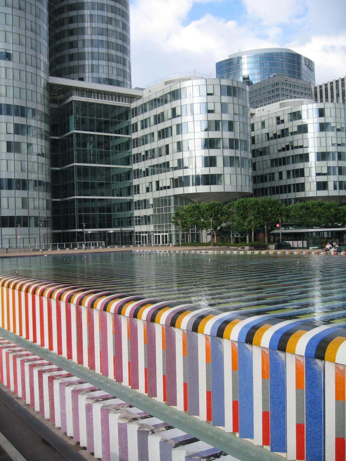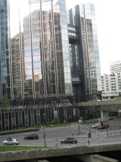 Первый раз я увидела Дефанс с транспортной магистрали, из окна автобуса, который совершил торжественный объезд комплекса. Быстрая смена картинок этого "зазеркалья" произвела ошеломляющее впечатление. В следующий приезд - пешая прогулка и восприятие Дефанса с уровня пешеходной эспланады. Впечатление не менее сильное. Я бы сказала, что существует как бы два уровня Дефанса: верхний с летящими в небеса и отражающимися друг в друге небоскребами