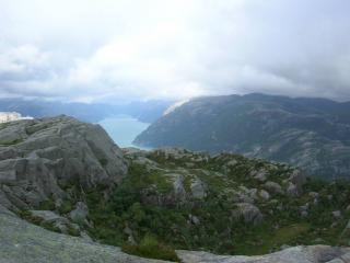 Опубликовано 21 февраля, 201312 г. Автор comment_294173 Станция вторая - Кафедра Проповедника Название гигантского утеса Прекестулен по-английски звучит, как Preacher’s Pulpit – «Кафедра проповедника». Вершина утеса – это ровная площадка 25х25 метров, расположенная на высоте 604 метров. Отсюда открывается потрясающий вид на фьорд и плато Кьераг. Для того чтобы попасть на утес, необходимо преодолеть 6 км нелегкой горной тропы, которая начинается на высоте 270 м у «Preikestolhytta Youth Hostel» и поднимается на 604 метра. В среднем восхождение занимает 2 часа, ведь тропа идет не просто вертикально, а петляет, несколько раз опускается в ложбины и взбирается на перевалы. Тропа после первого крутого подъёма почти постоянно идёт по плато. Но для тех, кто любит преодолеть побольше препятствий, предусмотрен маршрут по скалам. Можно прогуляться и к началу Люсефьорда, в деревеньку Люсеботн. Кафедра Проповедника относительно легкодоступна, сюда поднимаются даже на костылях. От того здесь практически всегда и многолюдно. Сидишь на краю, наслаждаешься пейзажами, а в голову червяком лезет мысль, не подтолкнул бы тебя случайно кто-нибудь. Но срабатывает инстинкт самосохранения. а это - часть нашей группы, успешно добравшейся до вершины Изменено 22 февраля, 201312 г. пользователем natusik Жалоба