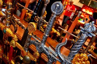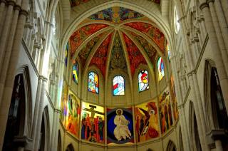 Далее нас завезли на фабрику по изготовлению толедских клинков. Там было видимо-невидимо ножей, шпаг, мечей, сабель, картин, украшений. Будто вернулись во времена средневековья и рыцарства. Затем нас подвезли к эскалаторам, выходящим на площадь Сокодовер, и началась наша обзорная экскурсия (10 евро) по «городу трех цивилизаций» (христианской, арабской, иудейской) Толедо, будто застывшему в 15 веке. Узкие пустынные петляющие улицы, старинные церкви и синагоги. Совершенно забываешь, какой сейчас век на дворе. Увидели церковь Сан-Роман, построенную вестготами в 6 веке, позже перестроенную мудехарами (потомки мавров), удивительное сочетание различных культур. Окунулись мы в эпоху рыцарства где-то на 1,5 часа и неожиданно вышли к громаде Кафедрального собора, одного из шести величайших храмов Европы. Нам выдали билеты (экскурсия стоила 15 евро) и мы прошли через «Ворота прощения», символизирующие отпущение грехов всем, кто через них прошел. Толедский собор потрясающ, весь в золоте, с великолепными ажурными решетками, изумительной резьбой по дереву, необычайным барочным скульптурным алтарем. Картины Эль Греко, Рафаэля, Гойи, Ван Дейка, Тициана. Ну, и конечно, сокровищница с драгоценными дарами сильных мира сего. Дарохранительница 16 века из 18 кг золота и 183 кг серебра, короны 16 века, кресты архиепископов. Произвели огромное впечатление скамьи в хорах 15 века, такая резьба по дереву на библейские сюжеты и сюжеты из истории города, нигде не повторяющаяся! Мне всегда нравились католические соборы, но разве можно сравнить красоту испанских соборов с французскими или бельгийскими. Здесь все другое. Соборы Северной Европы более аскетичные, в основном резной камень и скульптура, в сравнении с православными храмами, выигрывали именно наши. Но, если сравнивать испанские храмы и православные, то мой выбор по красоте именно испанские, они такие «страстные» что-ли. Ведь испанцы – такие ревностные католики, уж если они что-то любят, то так! Например, коррида! И инквизиция была изобретена именно в Испании! Нигде инквизиция не действовала столь жестоко и всеобъемлюще, как это было в Испании, управляемой католическими монархами. А еще нам посчастливилось увидеть венчание в Толедском соборе! Очень красиво пели!