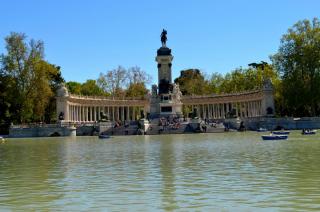 В этот день нам был предложен в 09.00 выезд на экскурсию в Эскориал и большинство группы поехало, но мы решили оставить Эскориал на следующий раз, так как если бы мы взяли все предложенные экскурсии, то мы бы не смогли реализовать свои пунктики по достопримечательностям Мадрида, которые ну просто обязательно надо было посетить, чтобы понять и почувствовать этот город. Итак, позавтракав, мы отправились на самостоятельную прогулку по городу. Было довольно прохладно, даже шарф пришлось повязать на шею. Но солнце ярко светило, обещая великолепную погоду, что и случилось! Пройдя по Гран Виа и улице Пресьядос (попутно завернув в 5-ти этажный магазин уже полюбившийся по предыдущим поездкам в Испанию и Италию испанской марки Desigual), мы дошли до в этот раз по настоящему солнечной Пуэрта дель Соль, полюбовались и свернули далее на Carrera de San Geronimo. Наша цель была Парк Ретиро! В такую то погоду! Это же невозможно было пропустить! По дороге заскочили в типично испанский бар попробовать испанского пива, привлеченные вывеской с акцией на пиво 0,5 л за 1 евро! Очень понравилось, светлое (хотя я больше люблю темное) и очень вкусное! Подняв и без того прекрасное настроение двинулись дальше, выйдя к фонтану Нептуна и музею Прадо. А там до Ретиро рукой подать! Зашли через врата Испании (такая была рекомендация в путеводителе) и прошли по бульвару статуй до пруда с внушительным памятником королю Альфонсо XII и направо по бульвару Кубы до единственной статуи, посвященной Сатане «Падший ангел» (изображает Люцифера, изгнанного из рая и охваченного змеей) и розария. Великолепный парк огромной красоты и размеров, множество мадридцев с детьми и туристов, музыкантов, мимов, фокусников. Гуляли и наслаждались в удовольствие погодой и атмосферой. Вспомнили о времени мы уже где-то в 13.00 и поняли, что пора бежать к музею Прадо на встречу с группой и Алисой. А ведь мы еще собирались на вокзал Аточа заскочить, но видимо, не судьба! Так нас расслабил и покорил парк Ретиро, что совсем забыли о времени!