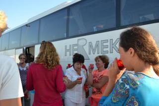 Ну, и конечно, не обошлось без белого итальянского вина. Прозвучали замечательные слова в адрес гида, водителей и туристов, вручены небольшие сувениры от ТТВ (магнитики) некоторым туристам.
