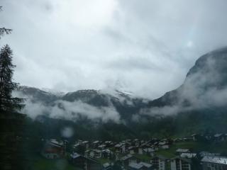Из окна поезда на спуске в Цермат.               А вот и кусочек увиденного Маттерхорна.