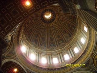 "Убранство Собора ошеломляет обилием золота, мозаик, величественных статуй святых, надгробными памятниками папам, а главное, изумительными творениями Бернини и молодого Микеланджело."