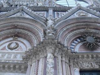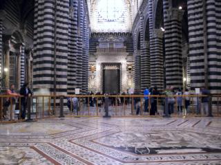 Опубликовано 2 ноября, 201312 г. Автор comment_374840 День девятый. Сиена. Завтрак в 7.00. Выезд в 8.05. В Сиену мы прибыли в 11.00. От места парковки до места начала экскурсии шли пешком. Еще в Риме, стоя в ожидании автобуса, мы ощутили изменения в погоде: начал накрапывать дождик. В Сиене, увы, он только усилился. В этот день я здорово промахнулась с обувью: босоножки явно не очень подходят для такой погоды. Но ничего не поделаешь, надо же было хоть в чем-то промахнуться. Экскурсия началась в базилике Сан-Доменико. Потом была предложена дегустация сиенских продуктов. На дегустацию из-за большого количества записавшихся делились на две группы, поэтому у кого-от было свободное время до дегустации, у кого-то после. С дегустации многие вернулись с пакетами. Я, как всегда, отправилась гулять самостоятельно. Маршрут по Сиене я не составляла, поскольку не смогла найти удобоваримую карту центра, все мелкое-какое-то. К сожалению, и у ТТВ карта Сиены не очень удачная, на мой взгляд: она тоже мелковата, названия половины улиц не обозначены. Так что гуляла я совершенно не системно. Правда, в городе много удобных указателей к главным достопримечательностям, в частности, к площадям Кампо и Дуомо. Особенно сильное впечатление производит Кафедральный собор — огромный, резной и нежно-розовый. Внутри он оказался полосатым — необычно. Вход в собор платный — 7 евро, возможно, в стоимость входило посещение еще-какого-нибудь объекта, но я под дождем как-то не разобралась. Общие вид собора получился в тумане, поэтому выкладываю только детали. Интерьер (тут явно требовался профессиональный фотоаппарат). Там же, в соборе, располагается великолепная Библиотека Пикколомини. Все пространство библиотеки покрыто фресками и орнаментами работы художника Пинтуриккио начала XVI века. Фрески повествуют о жизни папы Пия II (в миру его звали Энеа Сильвио Пикколомини, отсюда и название библиотеки). А библиотеку пристроил к собору его племянник Франческо Тодескини-Пикколомини - Папа Пий III. Площадь Кампо. Палаццо Толомеи на одноименной площади. Из Сиены можно привести интересные керамические сувениры: посуду и просто керамические плиточки — настенные украшения. Самая маленькая такая плитка стоит 5 евро. Магазинов много. Встреча для отъезда была назначена в 15.30 у Кафедрального собора. На самом же деле пришлось стоять в лужах до 15.45 — не знаю, почему, может, на дегустации группа задержалась. В 16.10 выехали из Сиены. В отель в городе Удин приехали в 22.15. Жалоба