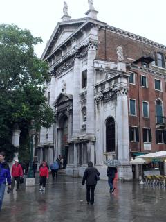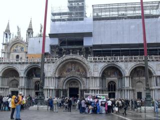 Опубликовано 17 октября, 201312 г. Автор comment_371988 Спасибо, Владимир! Помыли пингвинчиков... День четвертый. Венеция. Завтрак в 7.00 Выезд в 7.30. Город Тарвизио, в котором мы ночевали, видимо, совсем маленький, и не очень похож на итальянские города. Гораздо больше в нем от Австрии. Но как только из бара стали доноситься обрывки оперных арий, стало понятно — мы все-таки в Италии. Перед выездом нашлось время на небольшую фотосессию в окрестностях отеля. Было дождливо и туманно. В 10.45 сели на катер, который повез нас в Венецию. Распорядок дня: 11.25 — прибыли в Венецию. Первым мероприятием в Венеции стало катание на гондолах. 12.00 — начало обзорной экскурсии 13.30 — экскурсия во дворец Дожей. 14.30 — подъем на кампаниллу Сан-Марко. 15.00 — обед. 17.00 — отъезд из Венеции в такси по Гранд-каналу. 17.05 — отъезд из Венеции на катере. Это распорядок, который Ольга продиктовала нам еще в автобусе, поэтому реальное время мероприятий могло несколько сместиться, о чем точно сказать не могу, поскольку откололась от группы практически сразу. Классическое фото. Знакомство с Венецией я, конечно, начала с площади Сан-Марко. К сожалению, сам собор выглядел так: Это несколько помешало в полной мере оценить его красоту. Не знаю, заходила ли группа в собор во время обзорной экскурсии, но мне удалось его посетить. Вход бесплатный. Очередь, конечно, есть, но движется быстро, я стояла не больше 10 минут. Внутри великолепно, но темновато, поэтому фото нет. Далее мой путь лежал к еще одной знаменитой церкви Венеции — Санта-Мария делла Салюте. Поскольку она находится на противоположном от Сан-Марко берегу Гранд-канала, в районе Дорсодуро, пришлось познакомиться с характерным венецианским транспортом — вапоретто. Сразу скажу, что разобраться в этой системе нетрудно, даже мне, которая в Венеции была впервые. Станции вапоретто — серо-желтые. Билет на 60 минут стоит 7 евро (дорогой город — Венеция...). Большая карта маршрутов вапоретто есть на каждой станции. Есть табло, показывающие, куда идти, к примеру, для посадки на вапоретто №1 в направлении Piazzale Roma, которое мне и было нужно. Направление определяется по конечной станции, как обычно это и бывает в европейском транспорте. Ехать на вапоретто интересно. Есть закрытое отделение с сиденьями, там в основном располагается местный люд. Туристы же любуются красотами города с открытой палубы. Открытая она в том смысле, что крыша есть, а вместо вместо застекленных окон дыра, через которую можно фотографировать. Едет этот транспорт довольно медленно, станции то на одном берегу, то на другом. На каждой станции сотрудник - даже не знаю, как его правильно назвать — отработанным до автоматизма движением привязывает вапоретто к столбику на пристани и громкими выкриками возвещает о том, куда мы приплыли. А некоторые не кричат — ленятся, наверное... Я села в вапоретто на станции San-Zaccaria (от Сан-Марко взять чуть левее). Станция Salute — через одну. И вот красавица-церковь. Она была построена в честь избавления города от чумы 1630-1631 г. Далее, если пойти по улице справа от церкви, перпендикулярно Гранд-каналу и вдоль канала della Salute, то можно довольно быстро пересечь эту часть острова и выйти на его противоположную сторону, на набережную канала Джудекка. А дальше можно идти по набережной и налево, и направо. Если налево, то мы придем на «стрелку»: слева — канал Сан-Марко, перет