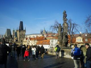 Опубликовано 12 января, 201411 г. Автор comment_391533 День 7. Прага Вот и наступил последний экскурсионный день нашего тура – нас ожидала красавица Прага. Мне доводилось уже бывать в Праге три раза, но по иронии судьбы это всегда происходило в зимнее время. Думаю, что Прага хороша в любое время года, но именно зимой у нее появляется какой-то особый шарм благодаря праздничной иллюминации, рождественским базарчикам и запаху глинтвейна. Программа в Праге предлагалась очень обширная: помимо обзорной экскурсии (3 часа), можно было выбрать прогулку на кораблике по Влтаве, обед в чешском ресторанчике, экскурсию «Магическая Прага» (6 евро) и новинку от наших гидов-сопровождающих – пешеходную экскурсию «Легенды и вкусы старой Праги» с дегустацией пива и абсента (20 евро). Сразу скажу, что если брать все экскурсии, свободного времени не остается совсем. Мы решили все-таки поучаствовать в обзорке, хотя проходили по этому маршруту не раз, ведь гиды все разные и преподносят информацию по-своему. И если честно, нисколько не пожалели о своем решении! На обзорную экскурсию мы выехали из гостиницы в 8.30. Алексей порадовал нас приятной новостью, что ТТВ сделал нам подарок в виде бесплатных наушников на этот день. Примерно в 9 часов с Пражского града началась пешеходная экскурсия с гидом Еленой, которая произвела на всех очень хорошее впечатление. Она сумела заинтересовать всех своими чрезвычайно интересными рассказами, при этом в нужные моменты давала время на фотографирование, мы даже сделали несколько остановок на дегустацию глинтвейна, кормежку лебедей, плавающих во Влтаве, и еще одну на Карловом мосту (чтобы у всех желающих была возможность загадать желание), заходили в собор святого Вита и собор святого Николая, посмотрели представление на астрономических часах Орлой на Староместской площади, а завершилась экскурсия на Вацлавской площади в первом часу дня. Дальше день был расписан по часам и минутам, в зависимости от выбранных экскурсий. От своих одногруппников мы слышали потом, что практически никому не понравилась экскурсия «Магическая Прага», проводимая гидом Натальей, что ее можно было провести гораздо интересней, тем более в такое новогоднее время «чудес». У нас же оставалось до отъезда из Праги еще около 7 часов, и мы отправились в «самостоятельное плавание». Вернулись на Староместскую площадь Неспеша гуляли по пражским улочкам и площадям, еще раз вышли к Влтаве, чтобы полюбоваться ее мостами и Пражским градом на противоположном берегу. Ну и конечно, не обошлось без дегустации чешской кухни. Решили пойти в тот же ресторанчик, в котором уже побывали в один из прошлых приездов – «U ceskych panu». Он находится недалеко от Вацлавской площади. Очень уютное место, залы которого выполнены в готическом стиле, а стены украшены гербами. Здесь было и меню на русском языке. Мы заказали традиционные чешские блюда (грибной суп в хлебе, смаженый сыр, свиное колено, мясо в пивном соусе), ну и конечно чешское пиво – и все было обалденно вкусным. После такого сытного обеда продолжили свои прогулки по городу, прошлись по праздничным ярмаркам, закупились сувенирами для друзей и знакомых, заглянули в супермаркет Billa, чтобы приобрести пару бутылочек бехеровки (как ни странно, выбора в Альберте почти не было). Я купила традиционную бехеровку и лимонную (Lemond). К этому времени уж